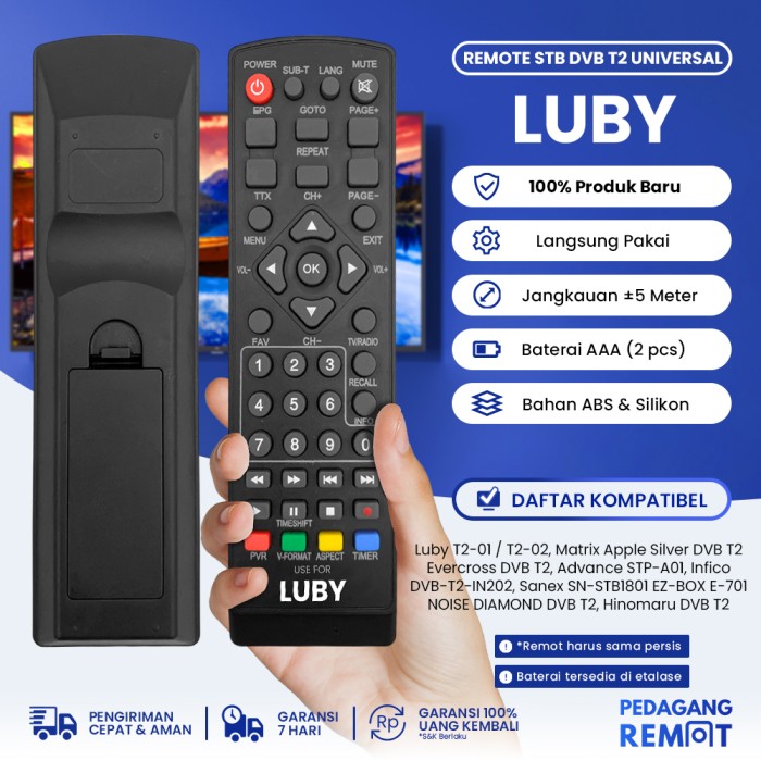 REMOT REMOTE STB PARABOLA LUBY T2-01 / SET T0P BOX RECEIVER LUBY T2-02