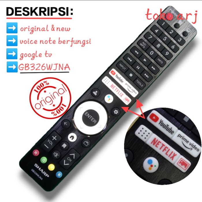 REMOT TV LED SHARP GB326WJNA ANDROID GOOGLE TV ASLI ORI ORIGINAL
