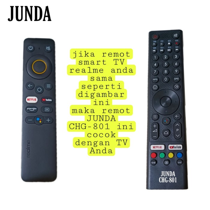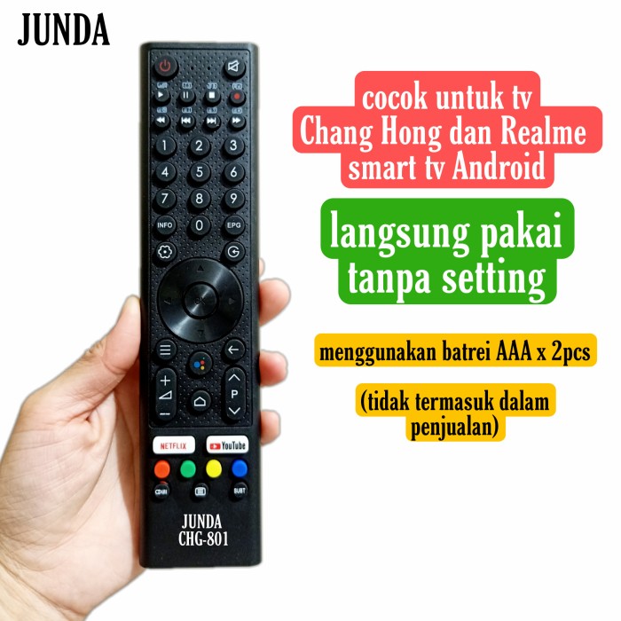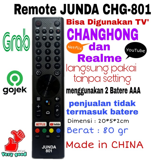 REMOTE REMOT LED JUNDA 801 COCOK DI CHANGHONG REALME SMART TV ANDROID - 803