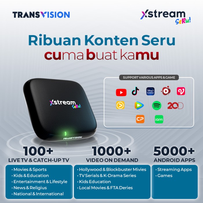 TRANSVISION XSTREAM SERU ANDROID TV BOX + FREE PAKET DIAM0ND 3 BULAN
