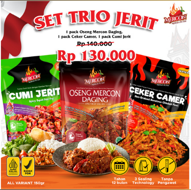 DM - Mercon Merah Putih - Set Trio Jerit|| Oseng Mercon Daging + Cumi Jerit Sambal Mercon + Ceker Mercon Tanpa Tulang