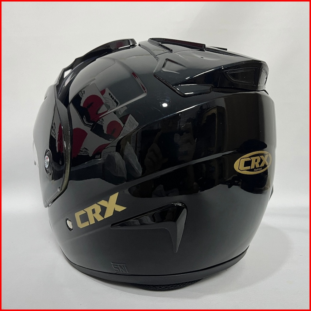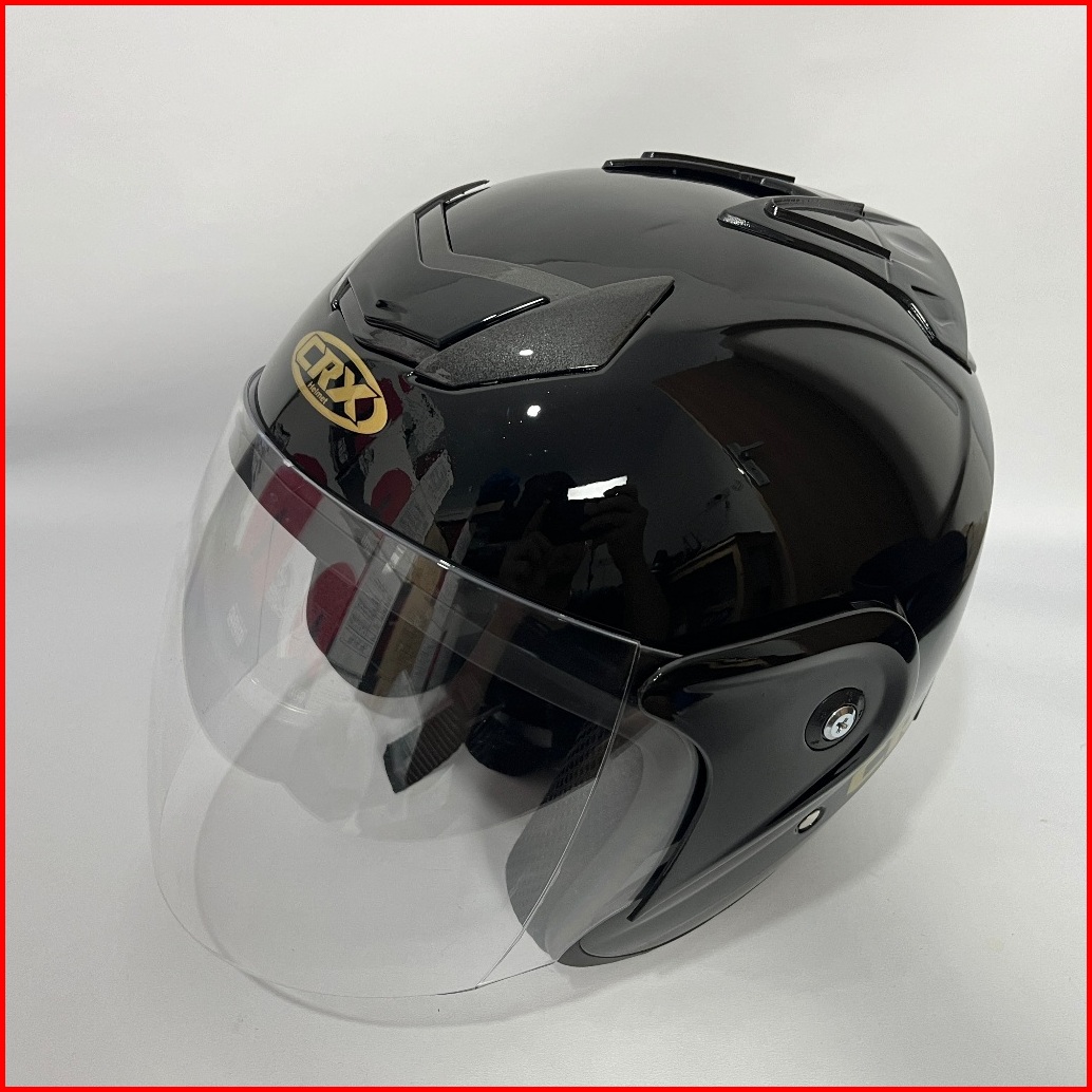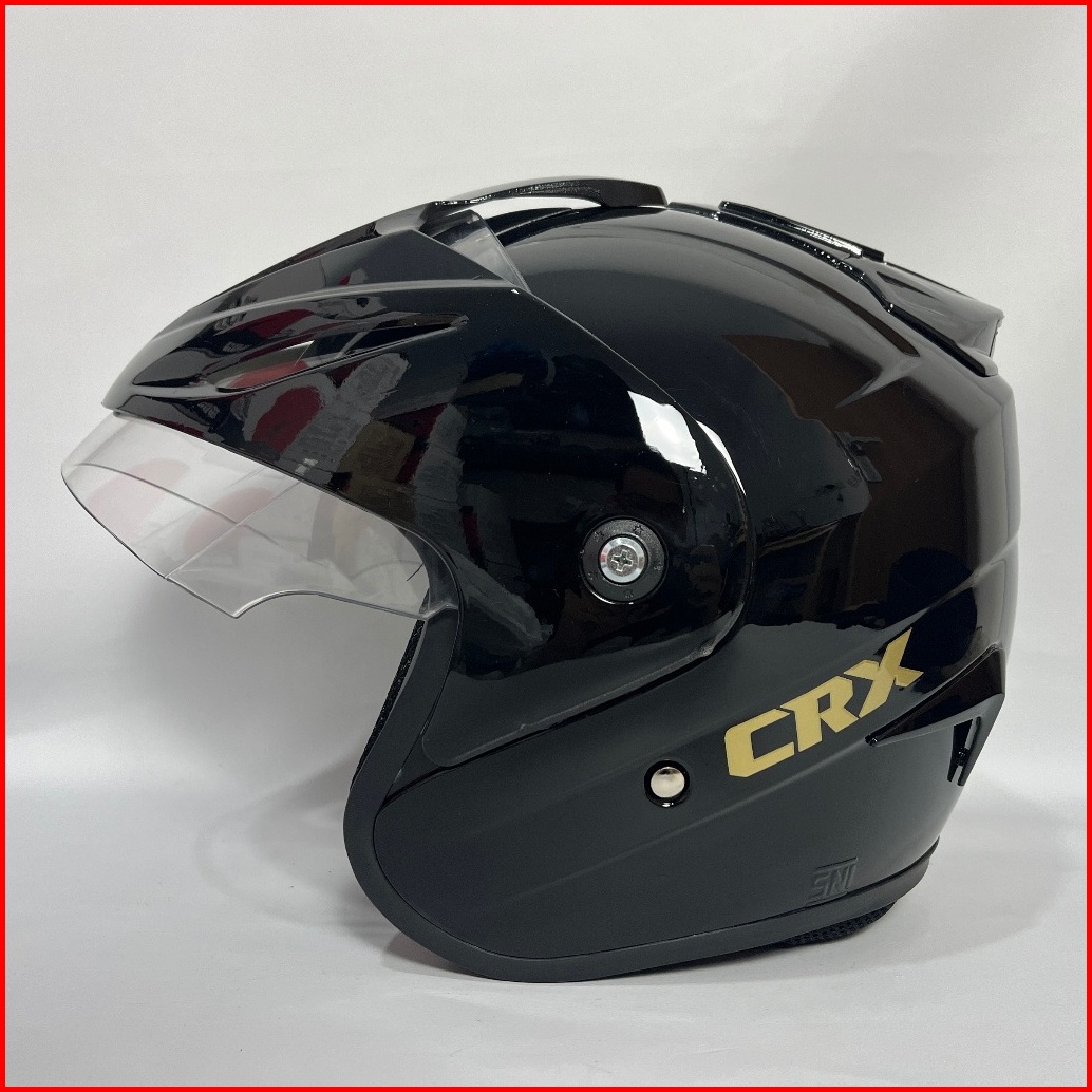 Helm Crx Fortune-x Hitam Glossy - Polos Solid - Single Visor - Kaca Pelangi Rainbow Iridium Silver Clear - Helmet Dewasa