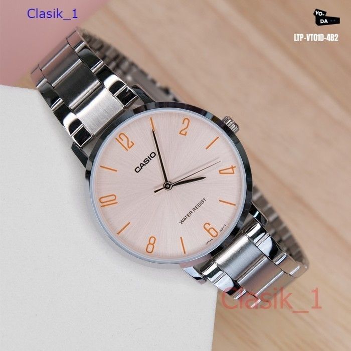 Original 100%!! CASIO LTP-VT01D-4B2UDF - Jam Tangan Wanita Silver Pink