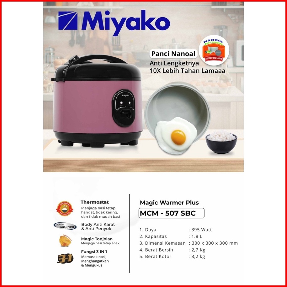 Magic Com Miyako Mcm507sbc Nanoal - Rice Cooker 1.8 Liter - Magic Warmer Plus 3in1