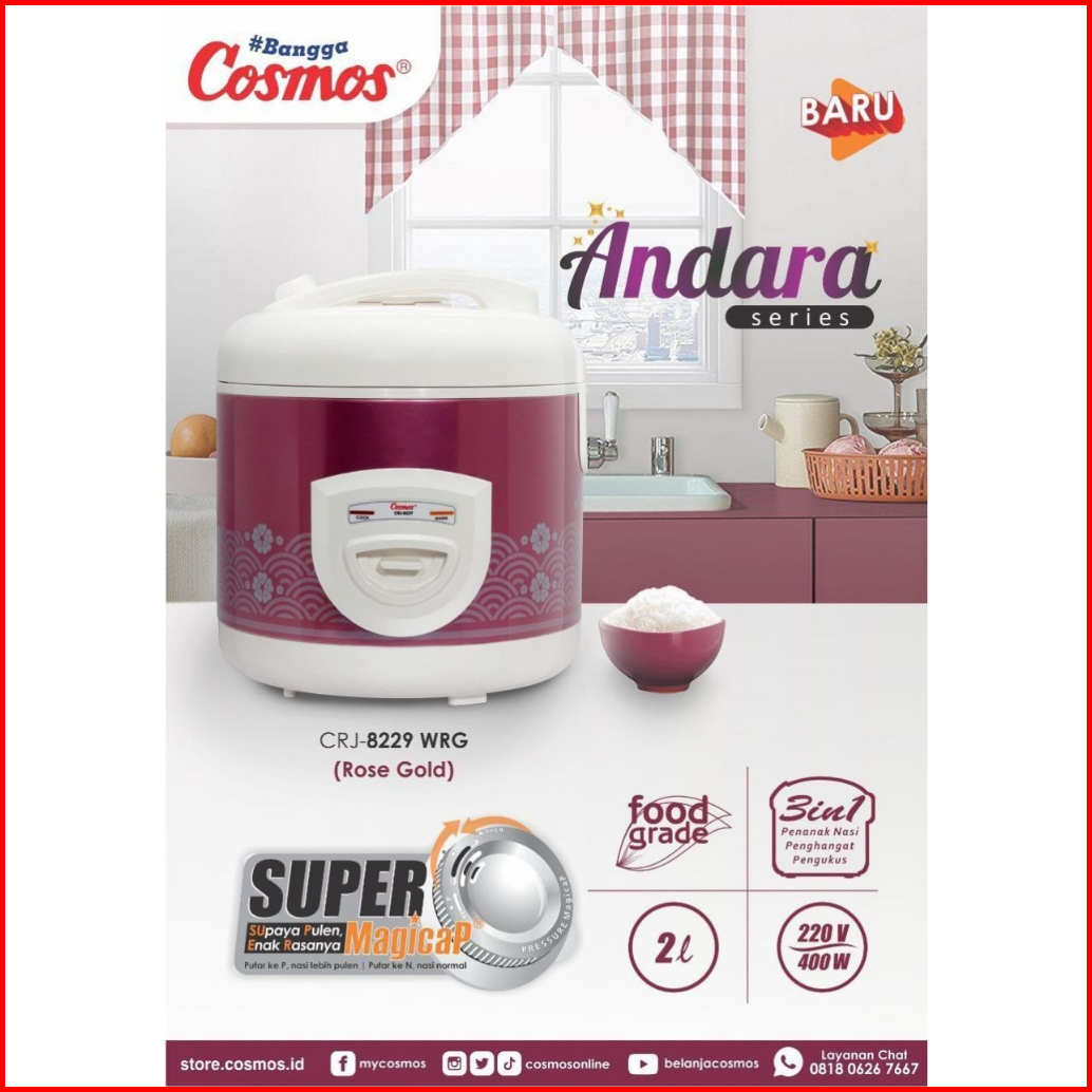 Cosmos Crj-8229 Rice Cooker Magic Com 3in1 2 Liter Body Stainless Crj 8229 Bss Dan Crj 8229 Wss