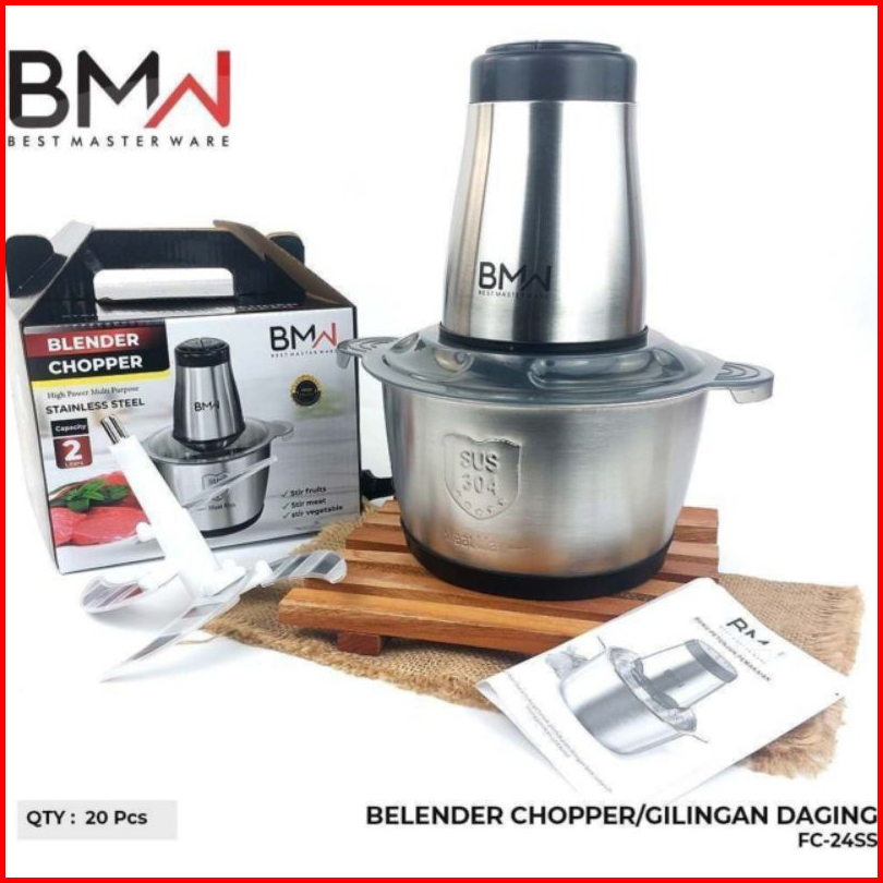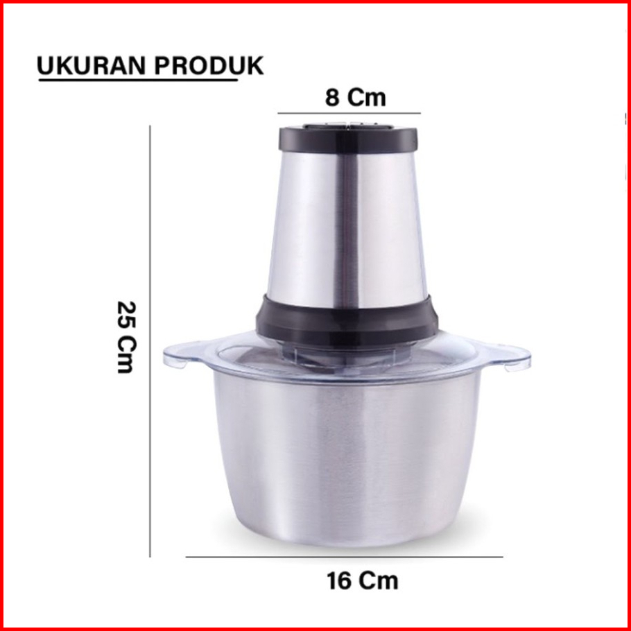 Blender Chopper Stainless Steel 2 L Penggiling Bumbu Daging Sayur Buah Food Processor