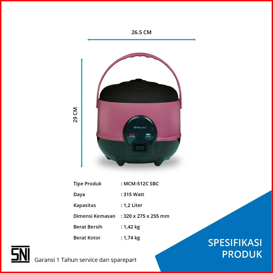 Magic Com Miyako Mcm512csbc - Magic Warmer Plus Rice Cooker- Nanoal 1.2 Liter - 315 W