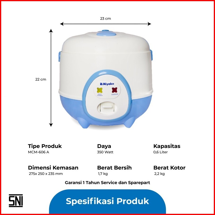 Miyako Rice Cooker Mcm-606 A B Sbc Magic Com 3 In 1 Rice Cooker 0.63 L 606sbc 606a 606b