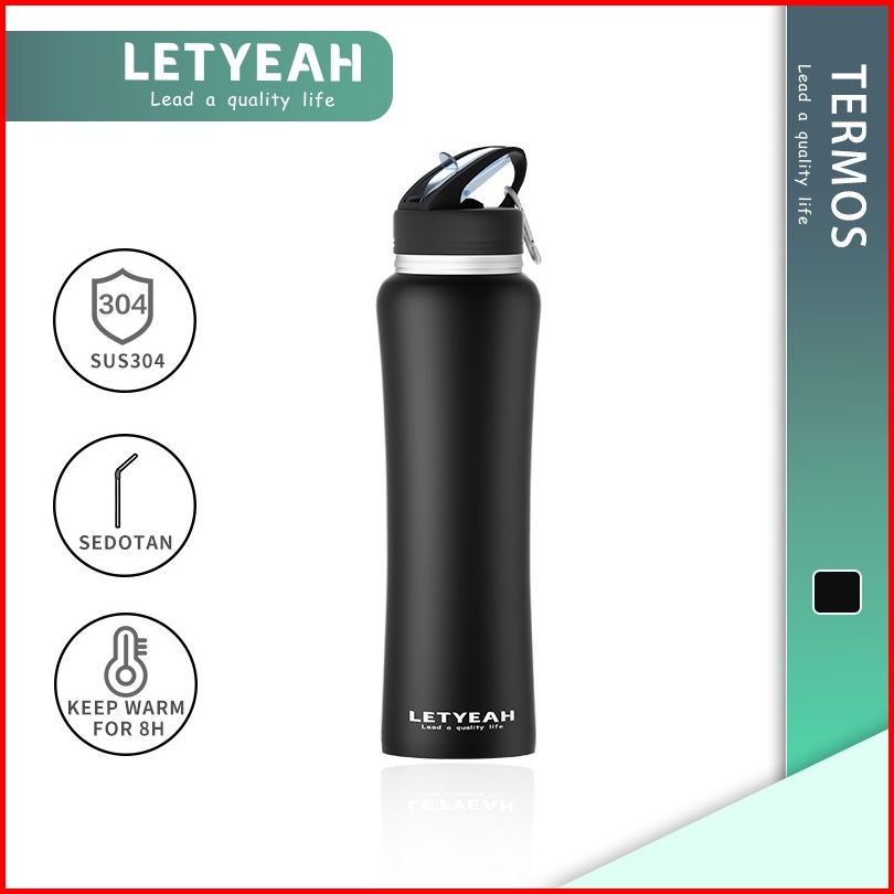 Letyeah Sus304 600ml Botol Olahraga Anti Bocor Portable Water Minum Sport Botol Tumbler Tahan Panas Stainless Steel
