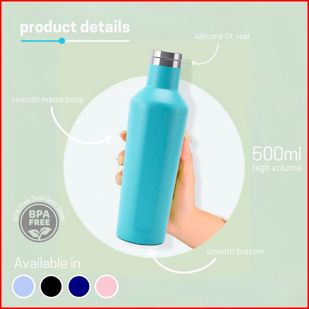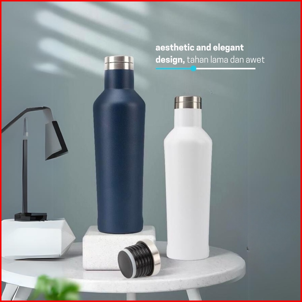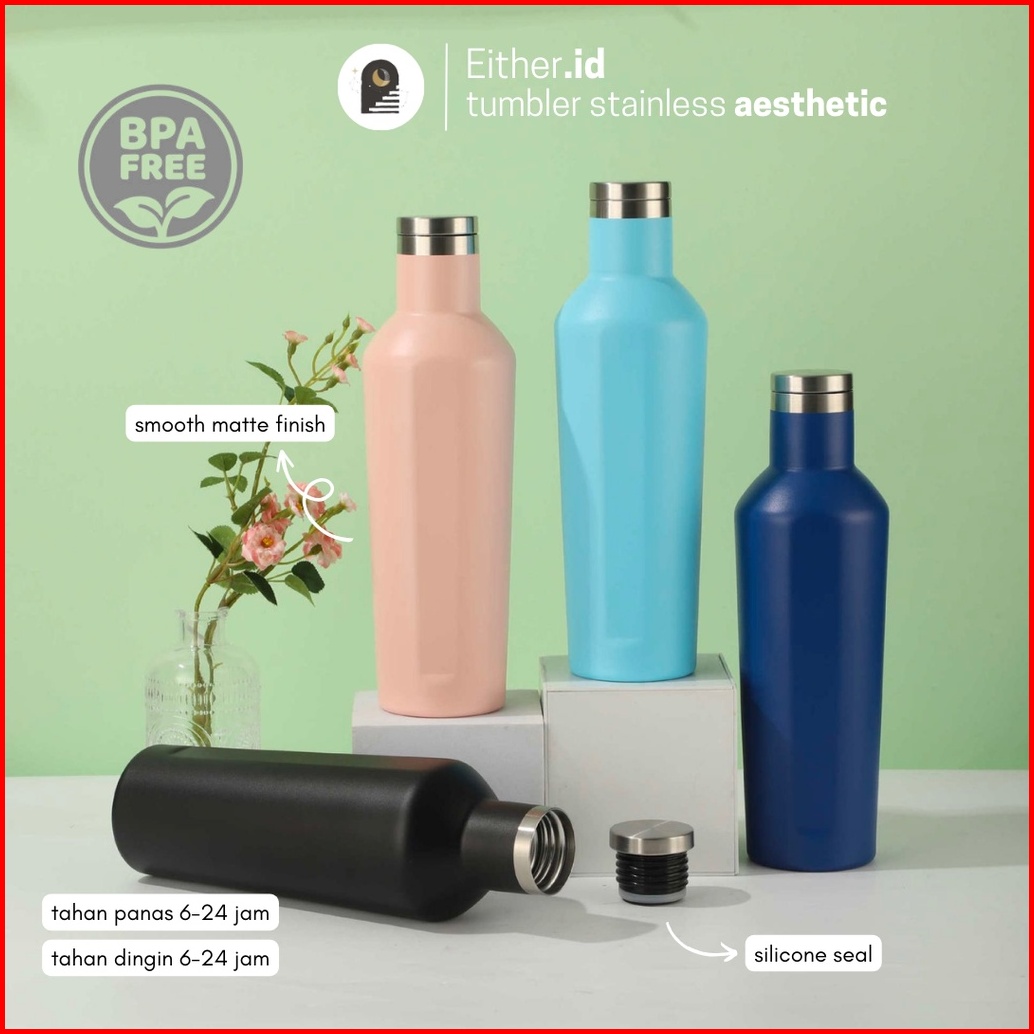Either.id - Botol Minum Aesthetic Tumbler Termos Premium Stainless Steel Dua Sisi Datar 500ml