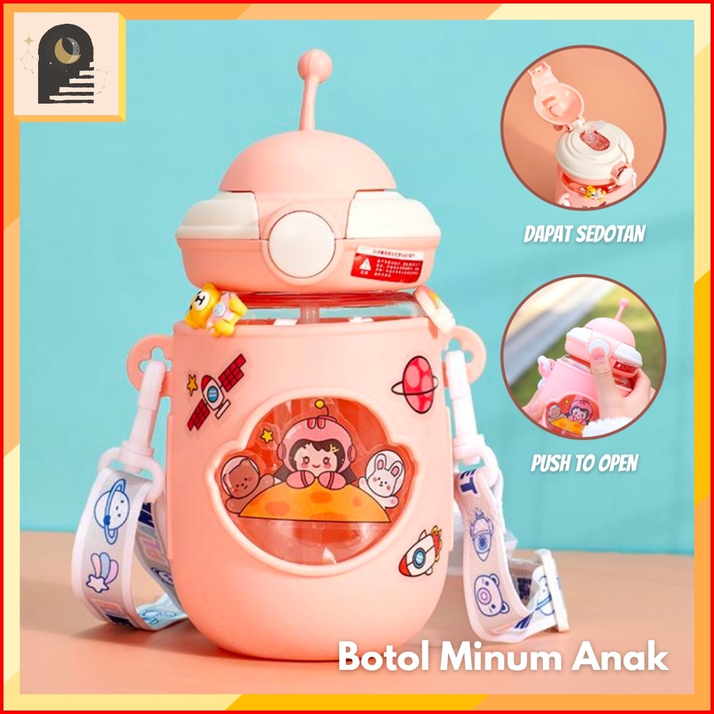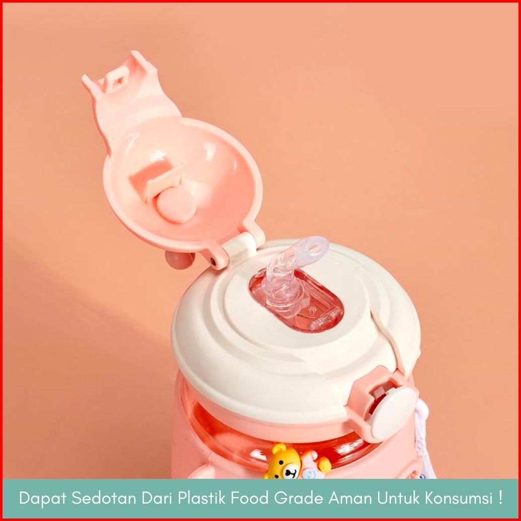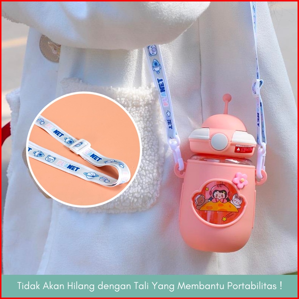 Either.id - Botol Minum Anak Bpa Free 600ml Dengan Sedotan Tali Free Stiker 2d 3d Tumbler Minum Aesthetic Sekolah