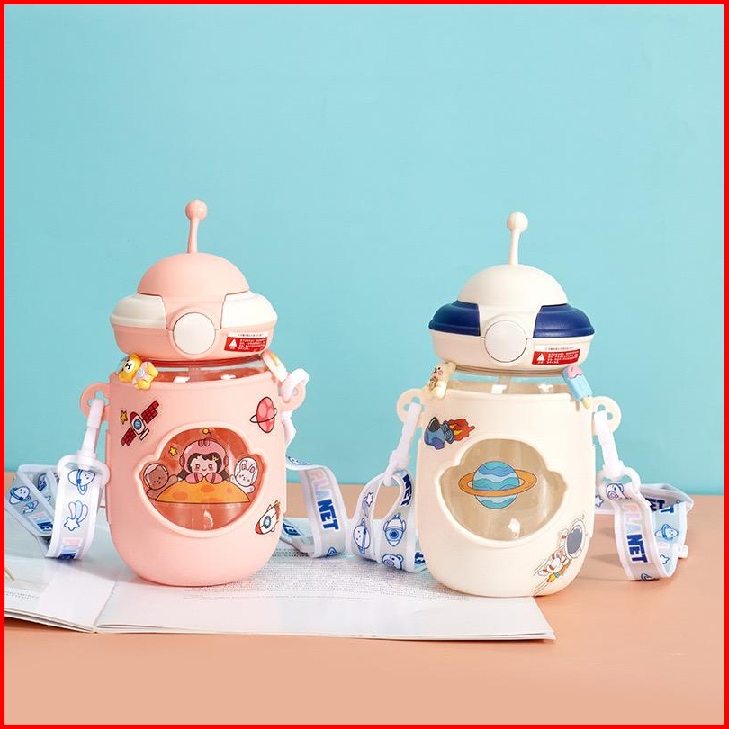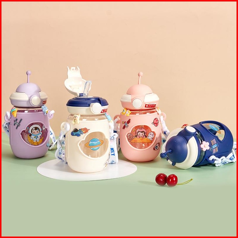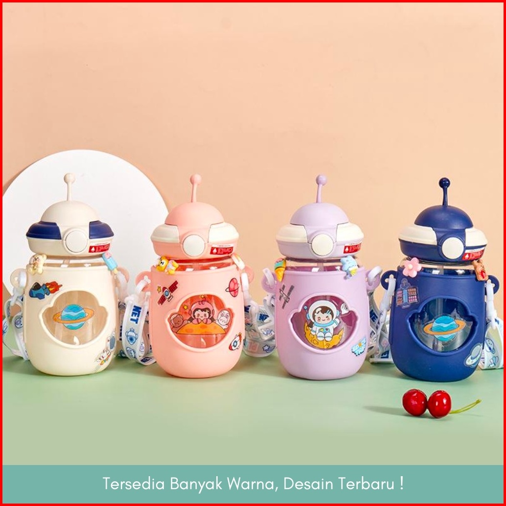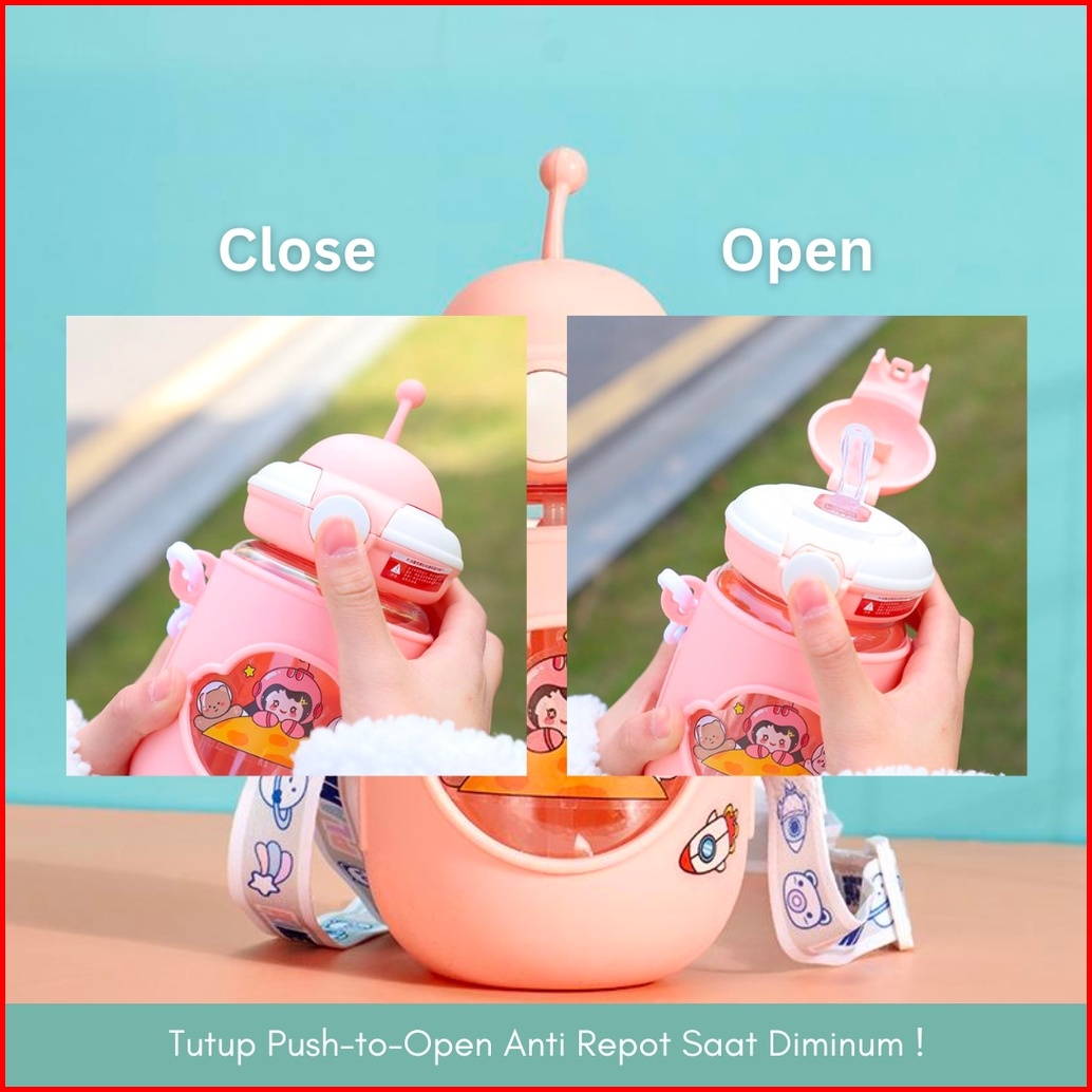Either.id - Botol Minum Anak Bpa Free 600ml Dengan Sedotan Tali Free Stiker 2d 3d Tumbler Minum Aesthetic Sekolah