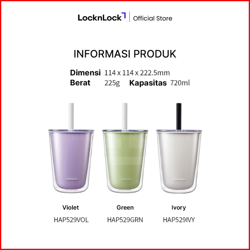Locknlock Botol Minum Double Wall Cold Cup With Boba Straw 720ml