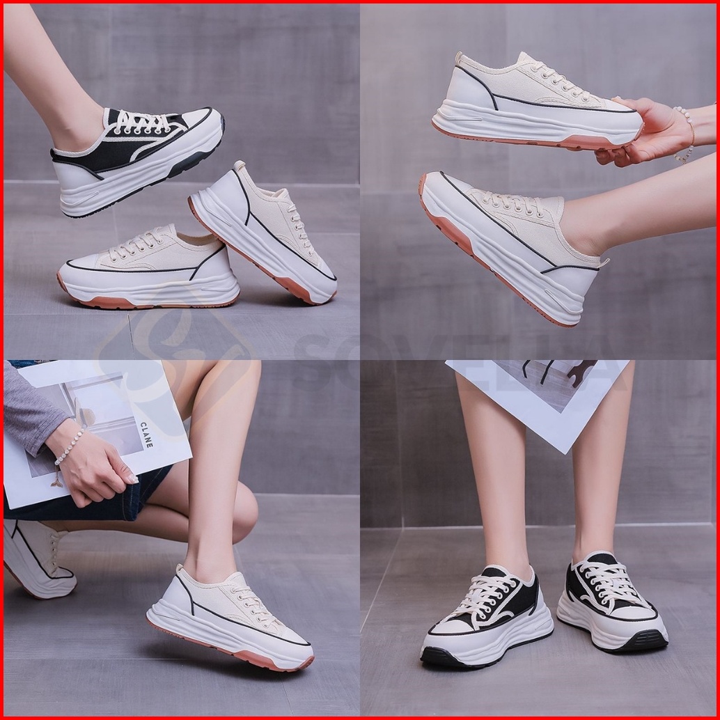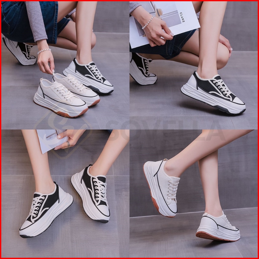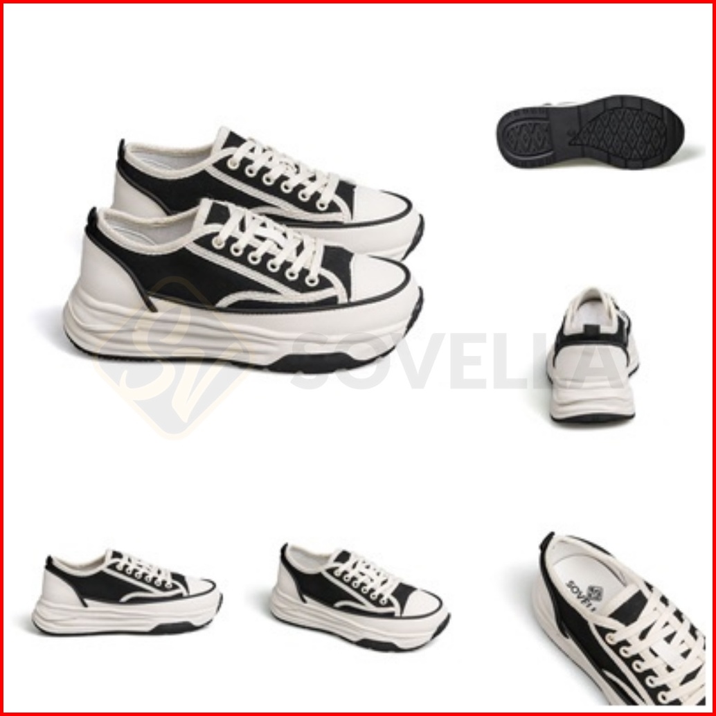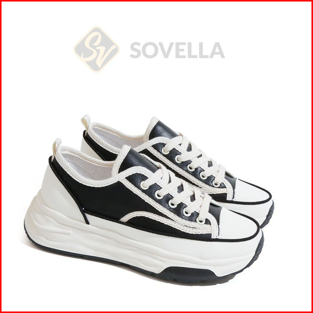 Sovella Aerys Sepatu Sneaker Hitam Putih Polos Olahraga Wanita