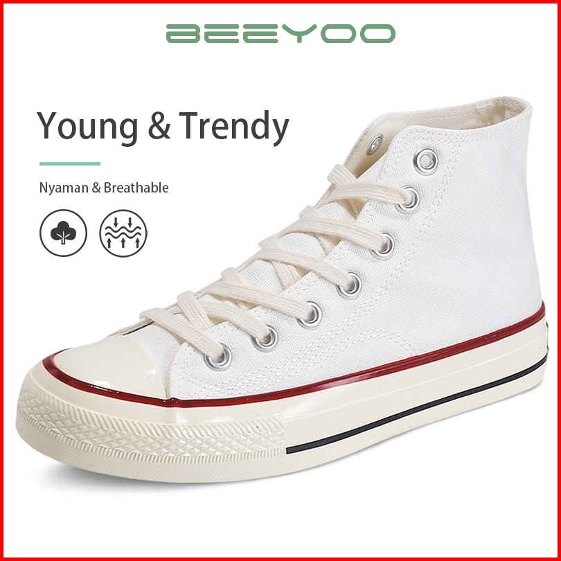 Beeyoo Sepatu Sneakers Wanita Sport Shoes Putih Sepatu Classic Tinggi Wk202