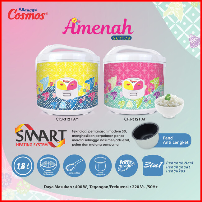 Cosmos Rice Cooker Non Stick Crj-3121 - 1.8 L Amenah Series 400w