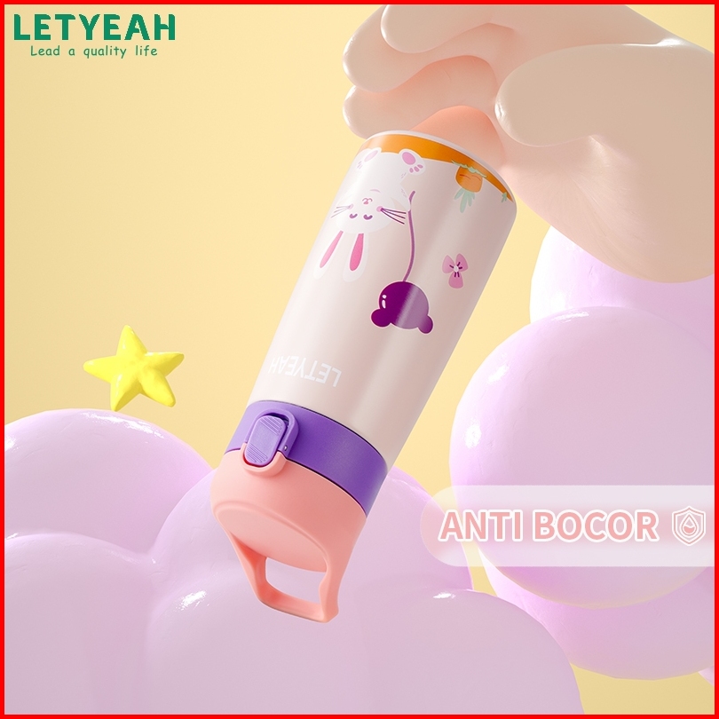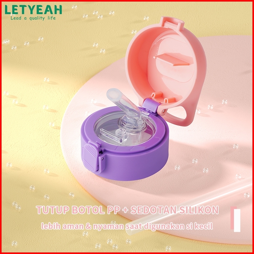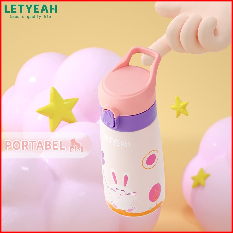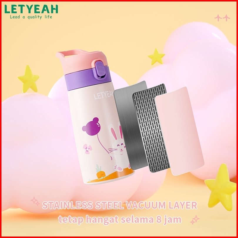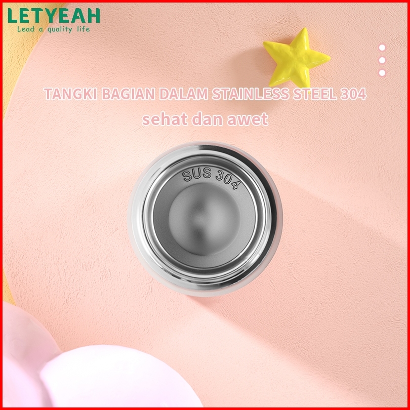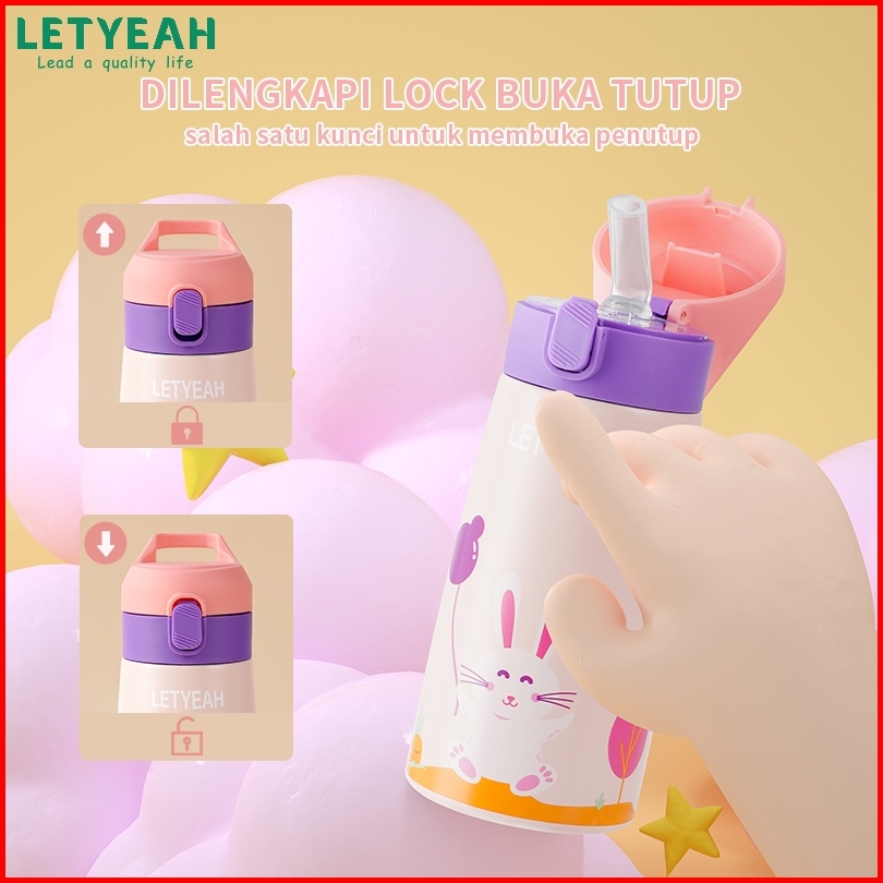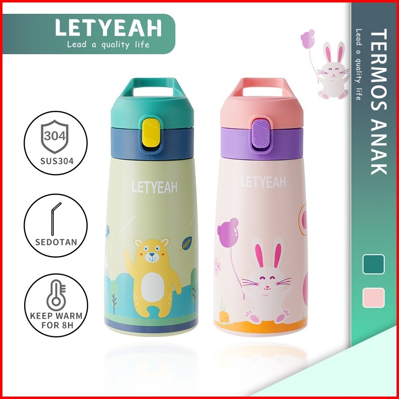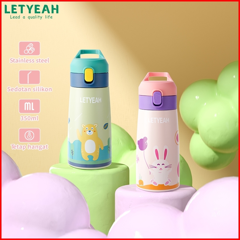 Baru Letyeah Botol Minum Sedotan Anak Stainless Steel 304 Termos Kartun Tahan Panas Dan Dingin Vacuum Flask 350ml