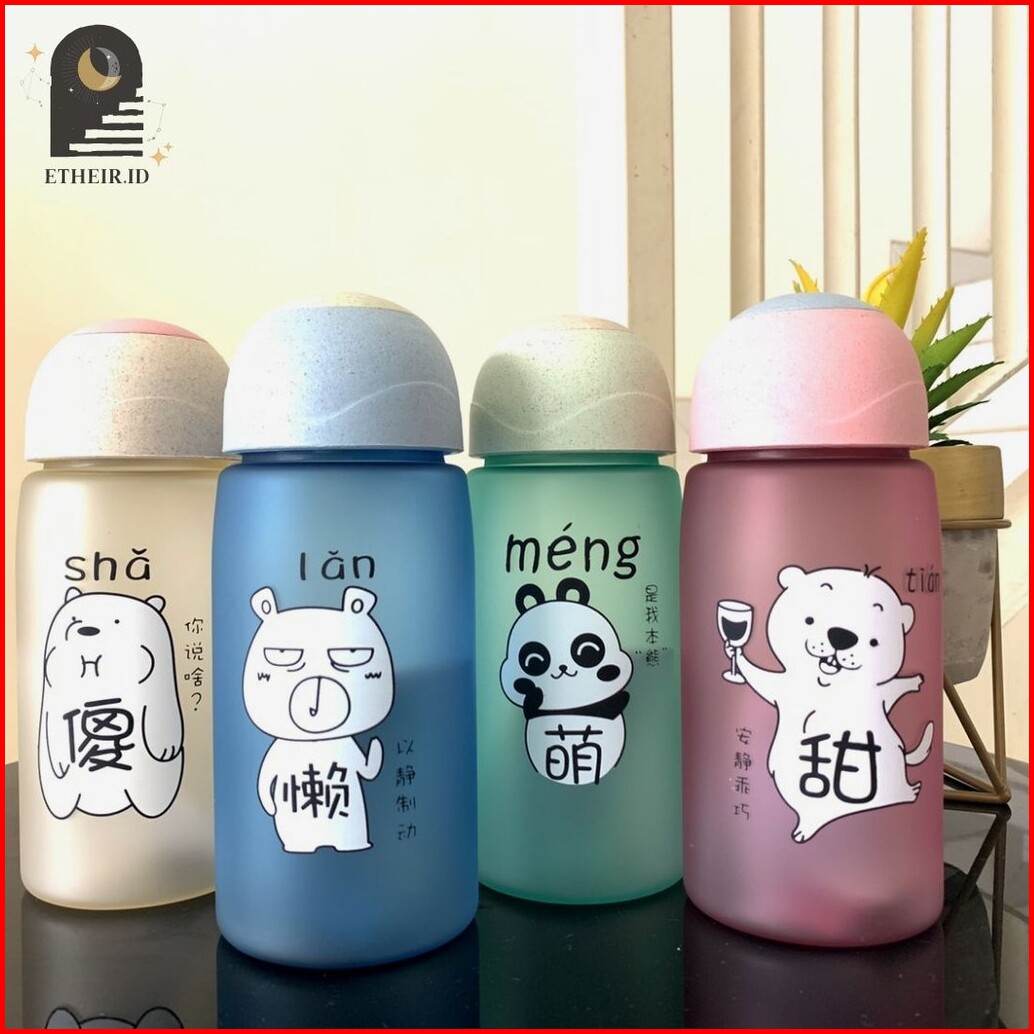 Either.id Botol Minum Anak Dewasa Unik Lucu Transparan Motif Aesthetic Plastik Premium 430ml - 680ml