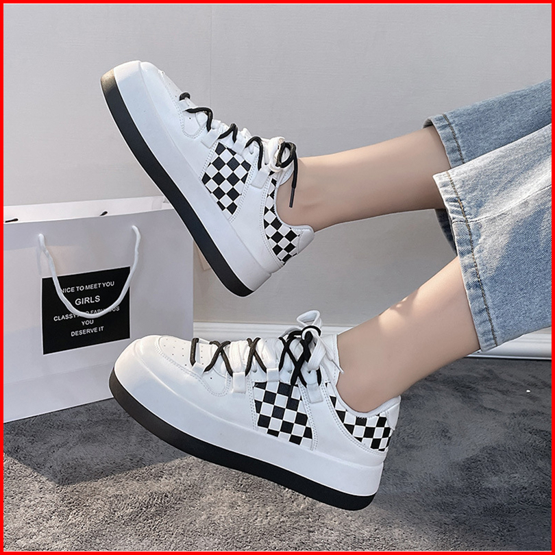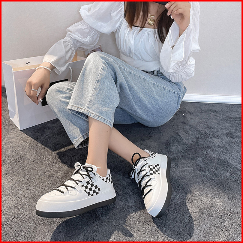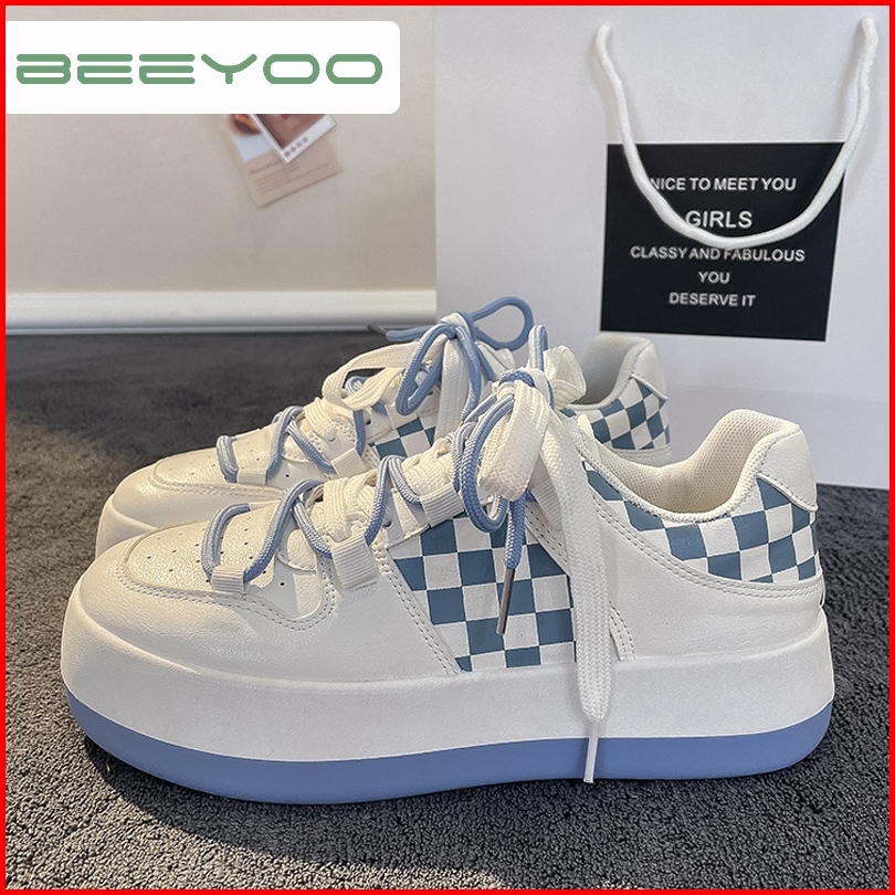 Beeyoo Sepatu Sneakers Wanita Kekinian Sepatu Fashion Casual Sepatu Kets Tali Cewek Olahraga Outdoor Wk133
