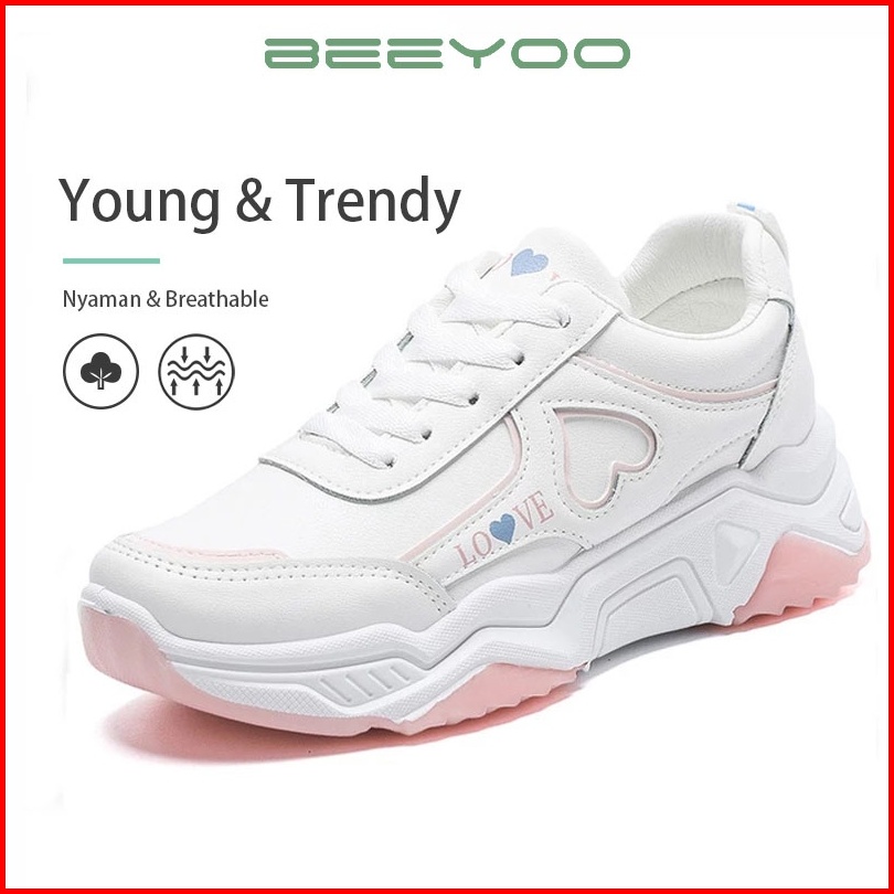 Beeyoo Sepatu Wanita Sneakers Putih Sepatu Fashion Wd104