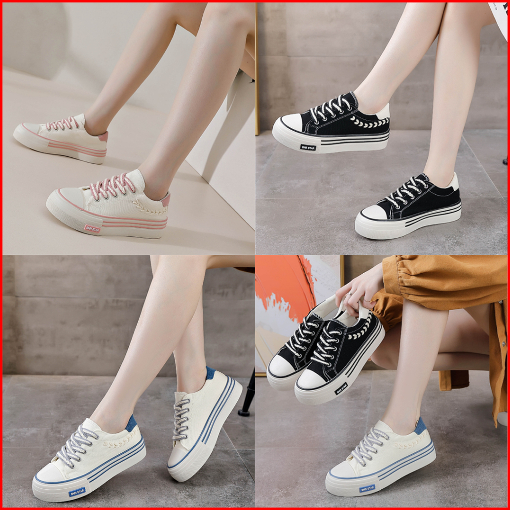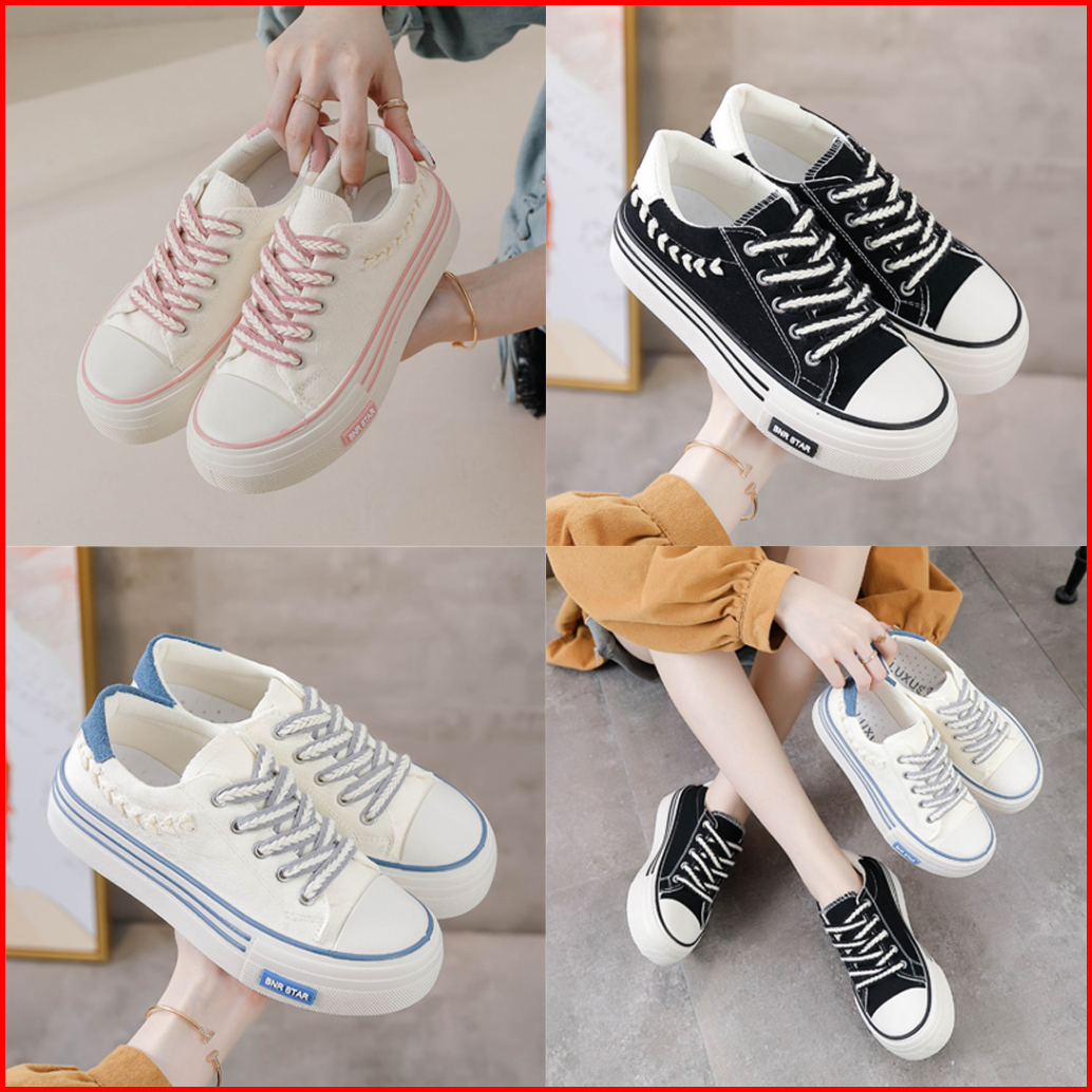Luxus Mirai Sepatu Sneakers Wanita Import Korea Canvas Tali Quality - Lxcf02