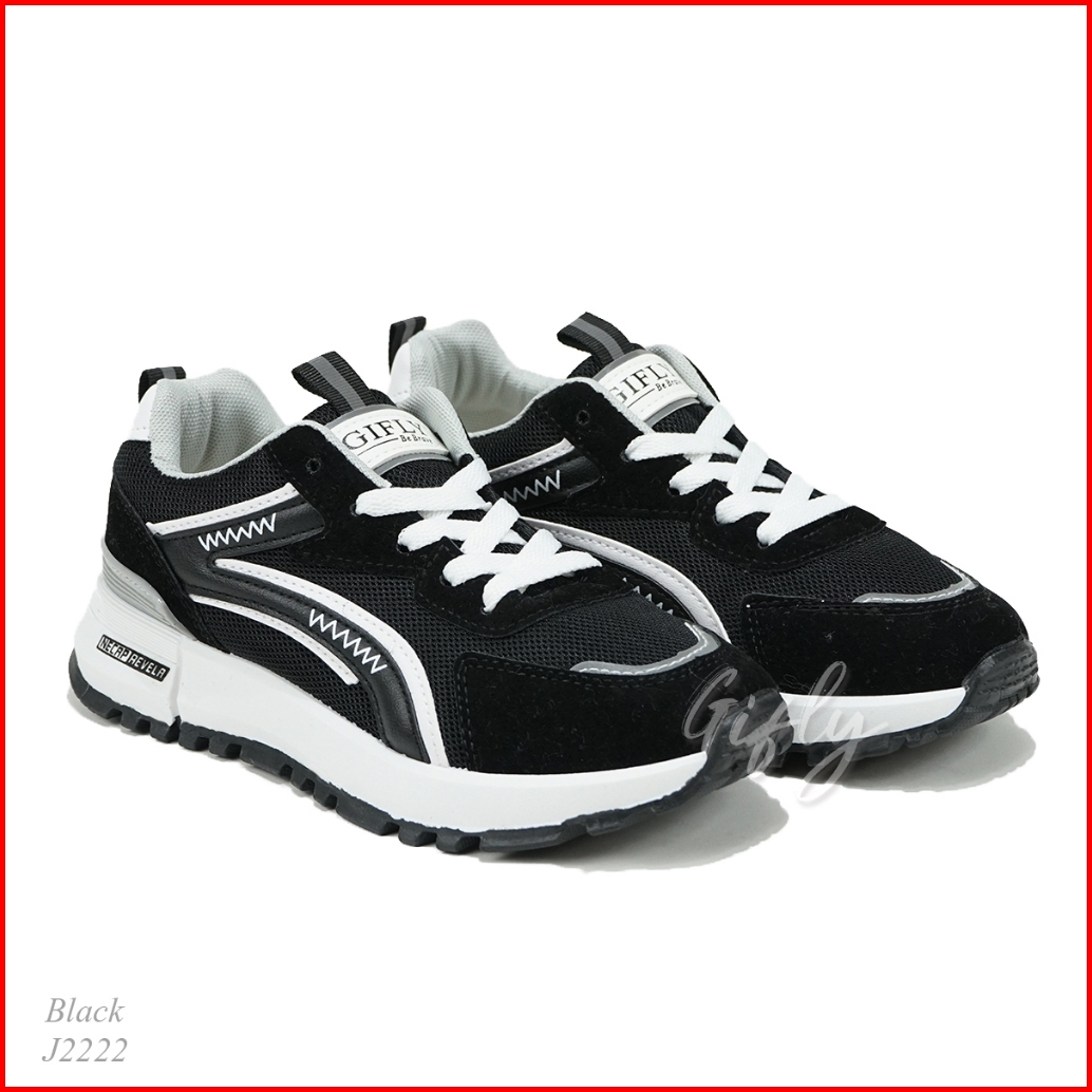 Gifly Jia Sepatu Sneakers Wanita Putih Hitam Sport Shoes J2222