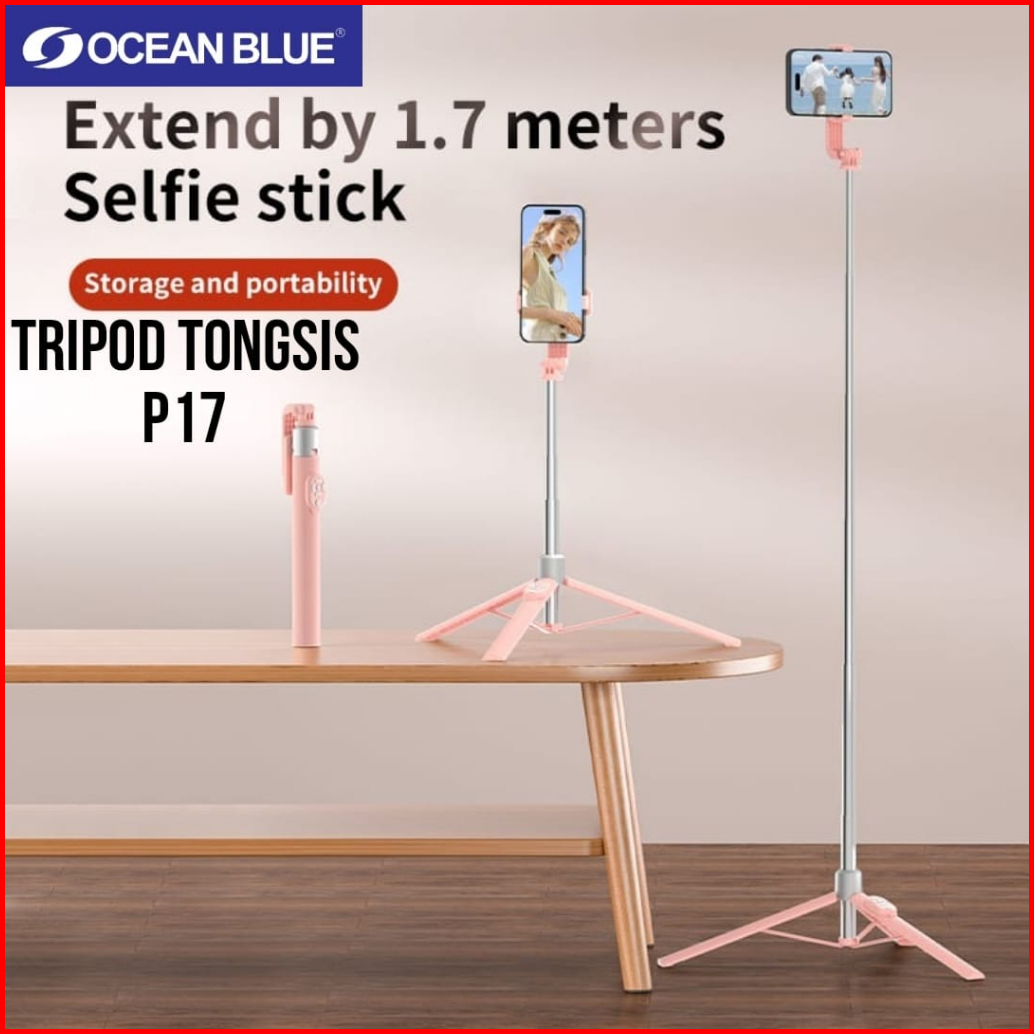Oceanblue Tripod Bluetooth Remote Shutter P17 170 Cm Tongsis Selfie Stick Konten Streaming Vlog