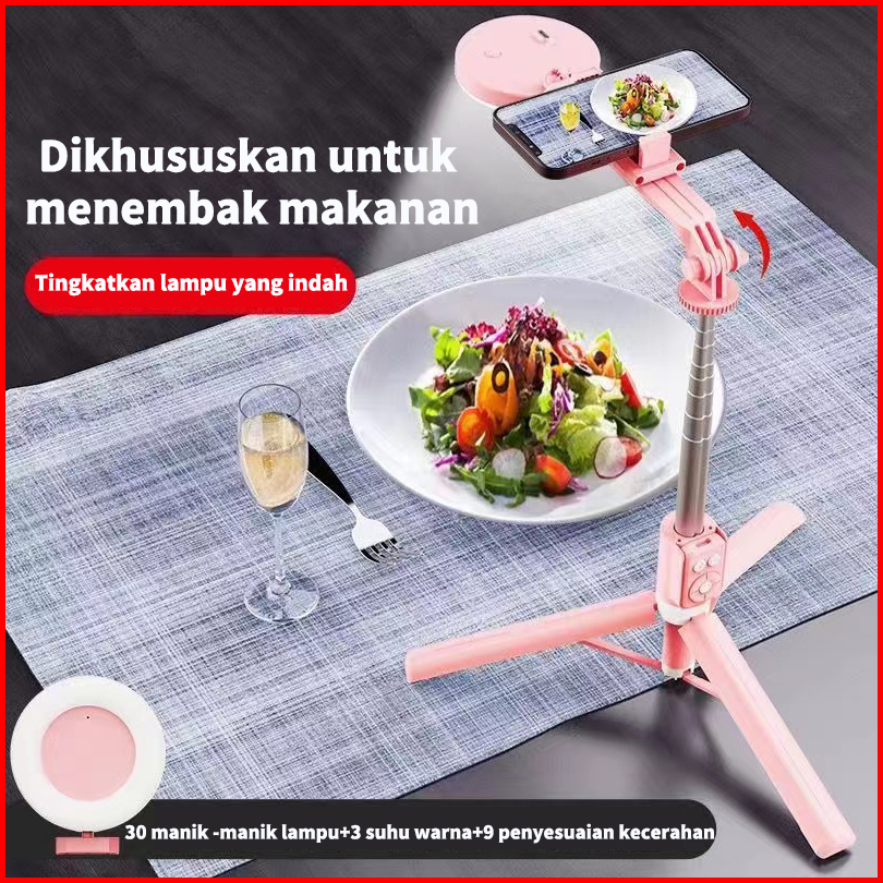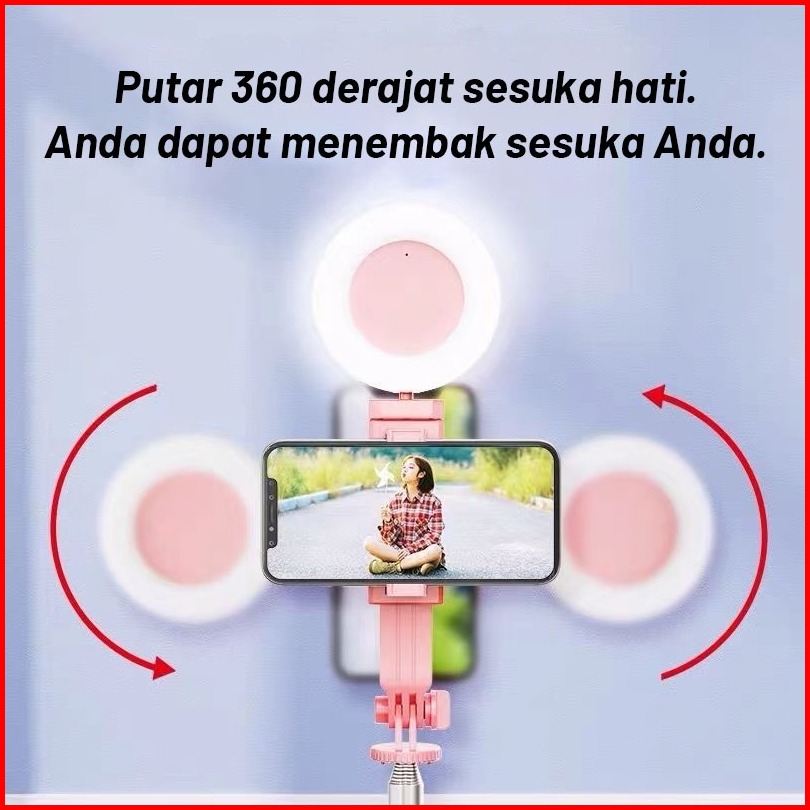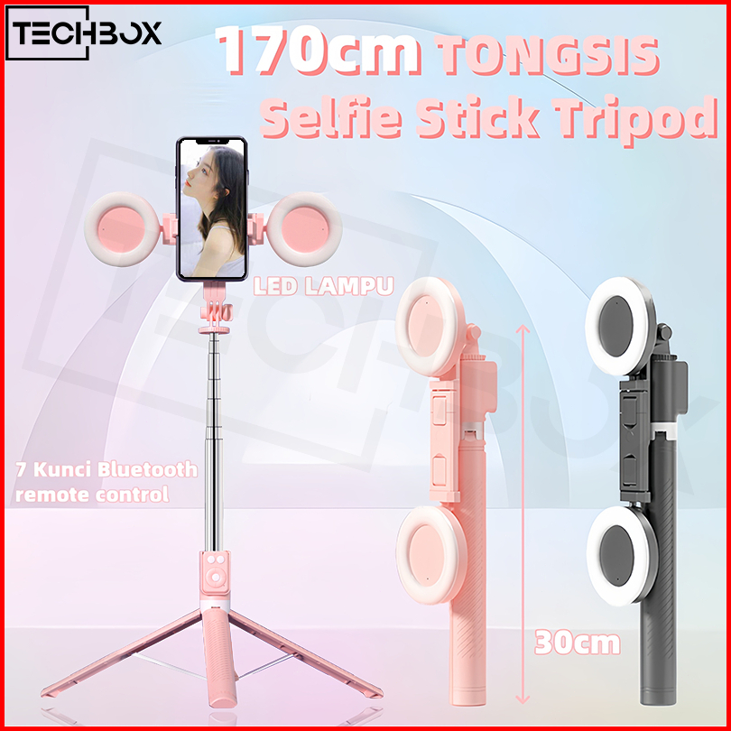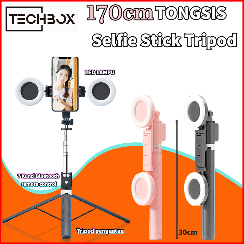 Tech Tongsis Tripod Selfie Stick Besar Lampu Led Bluetooth 4 In 1 Dengan 7 Tombol Remote Control 170cm Selfie Stick Port
