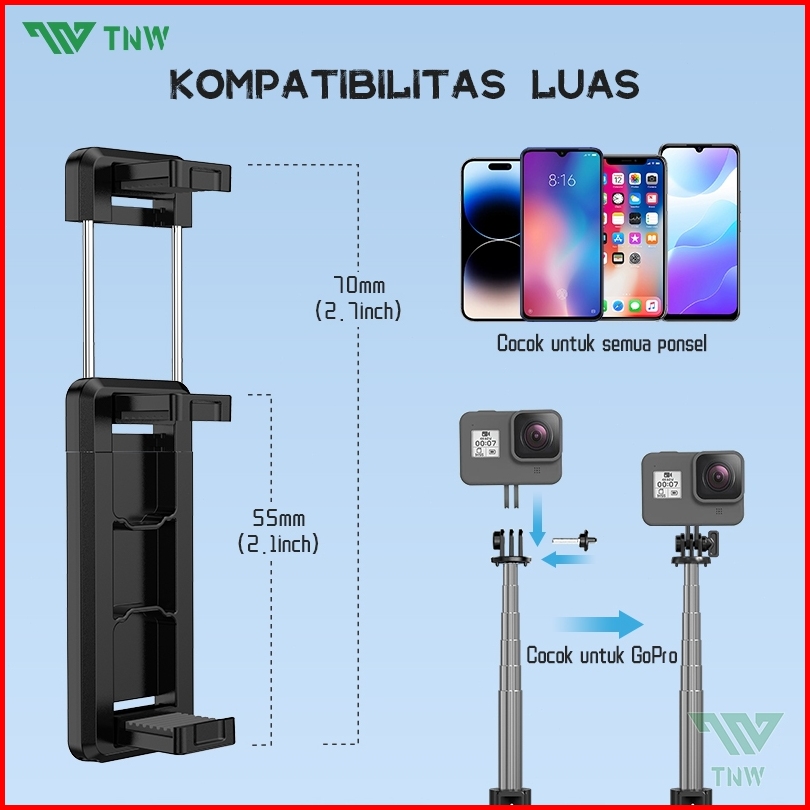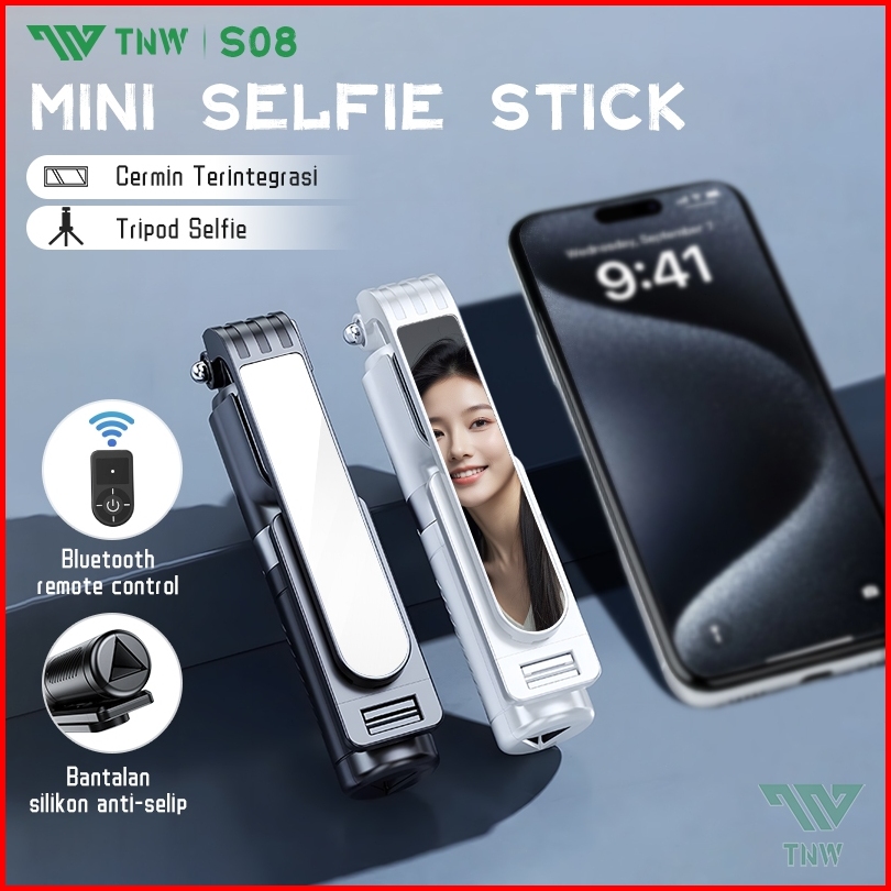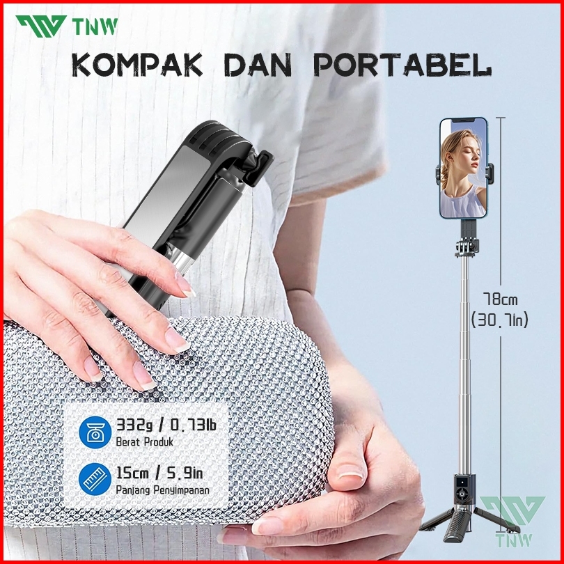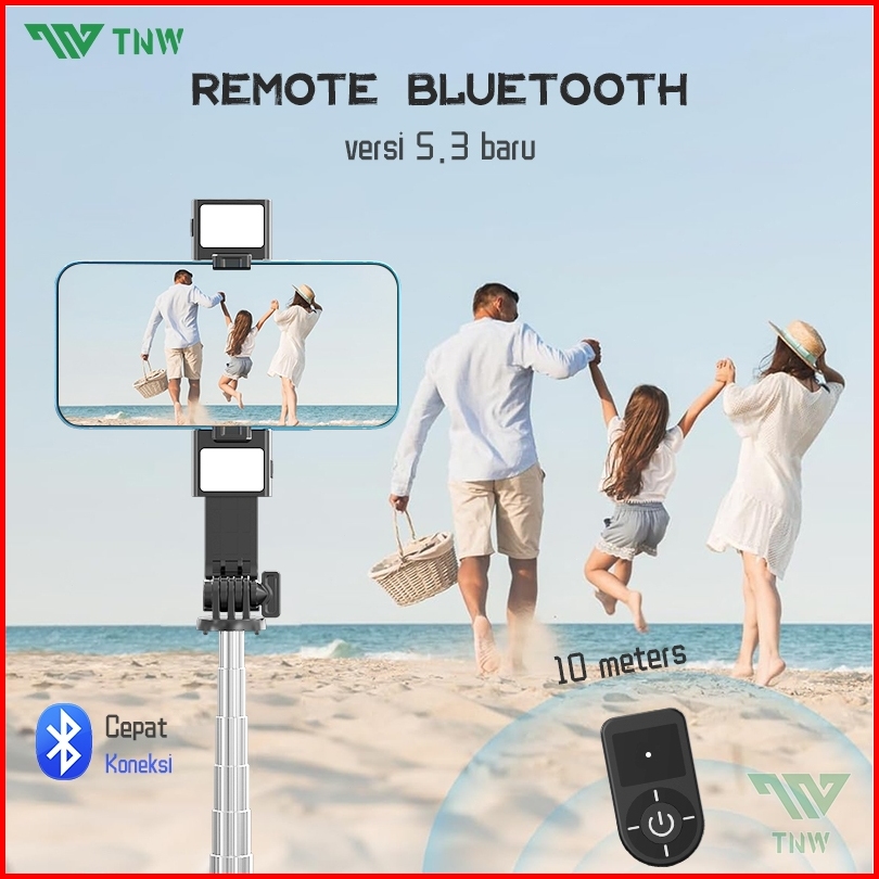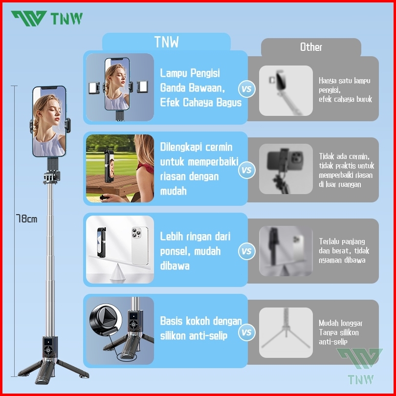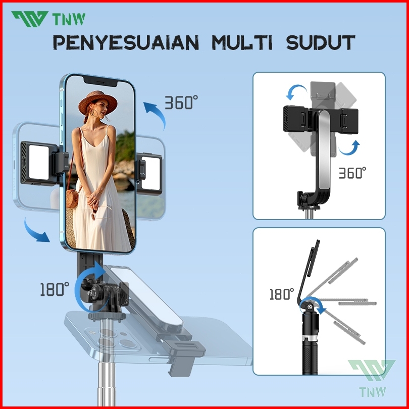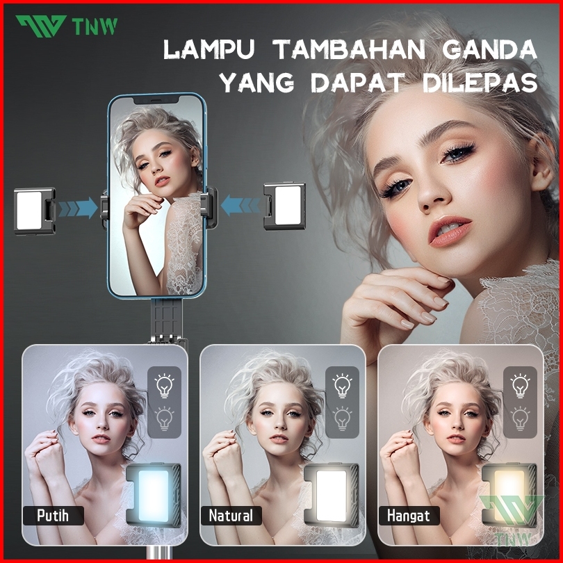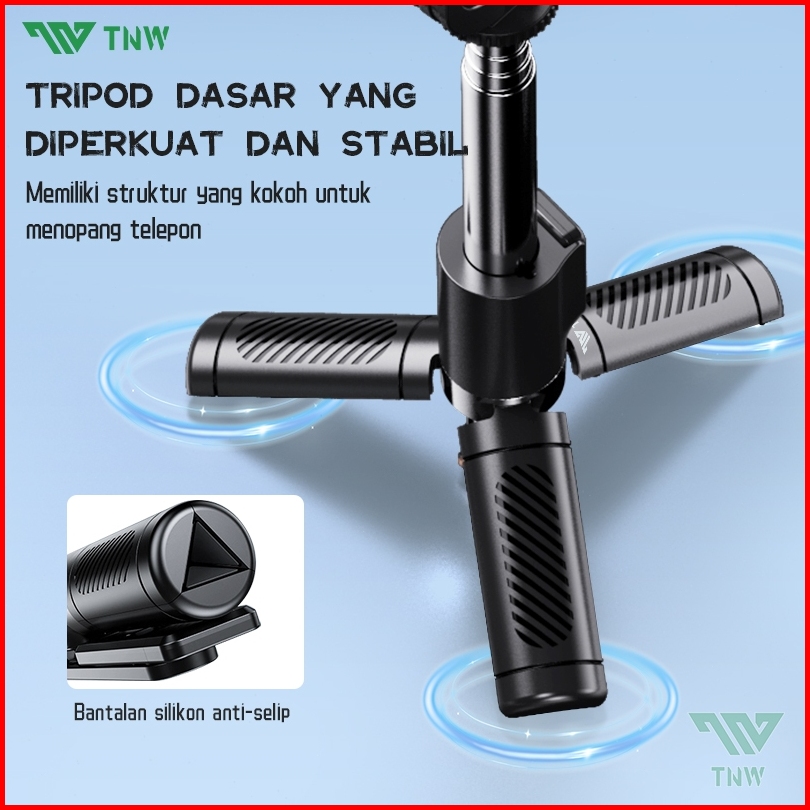 Tnw S08 Portable Selfie Stick Bluetooth Tongsis Tripod Tripod Led Fill Light Tripod Remote Control Tongsis Dengan Mirror