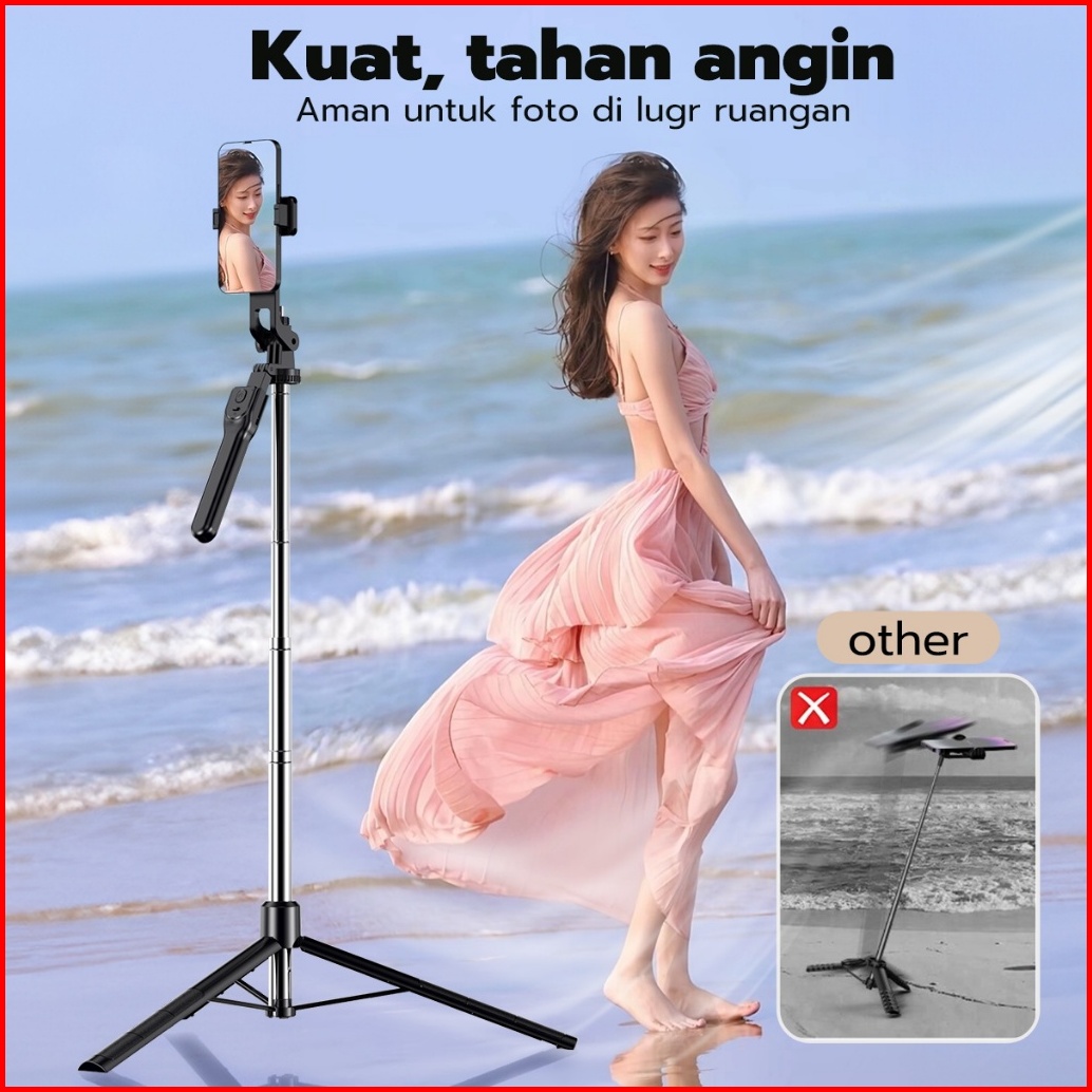 Kooyiinn 170cm Tongsis Tripod Bluetooth Remote V5.3 Selfie Stick Hand Stabilizer Aluminium Untuk Hp Kamera Dslr Tongsis