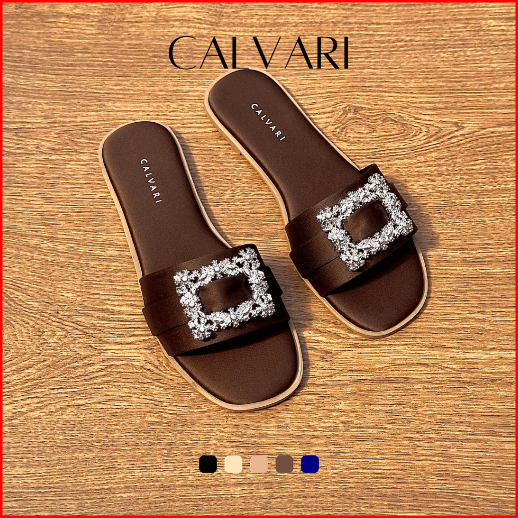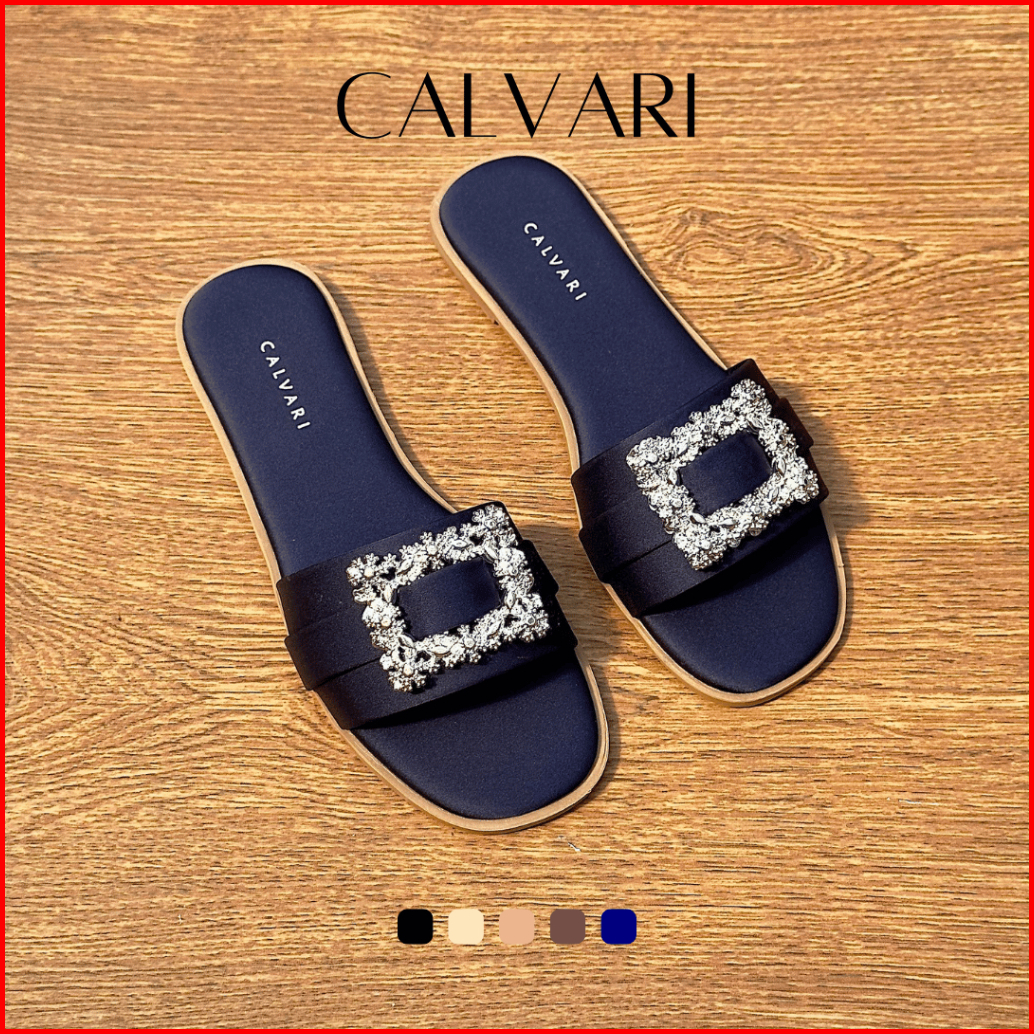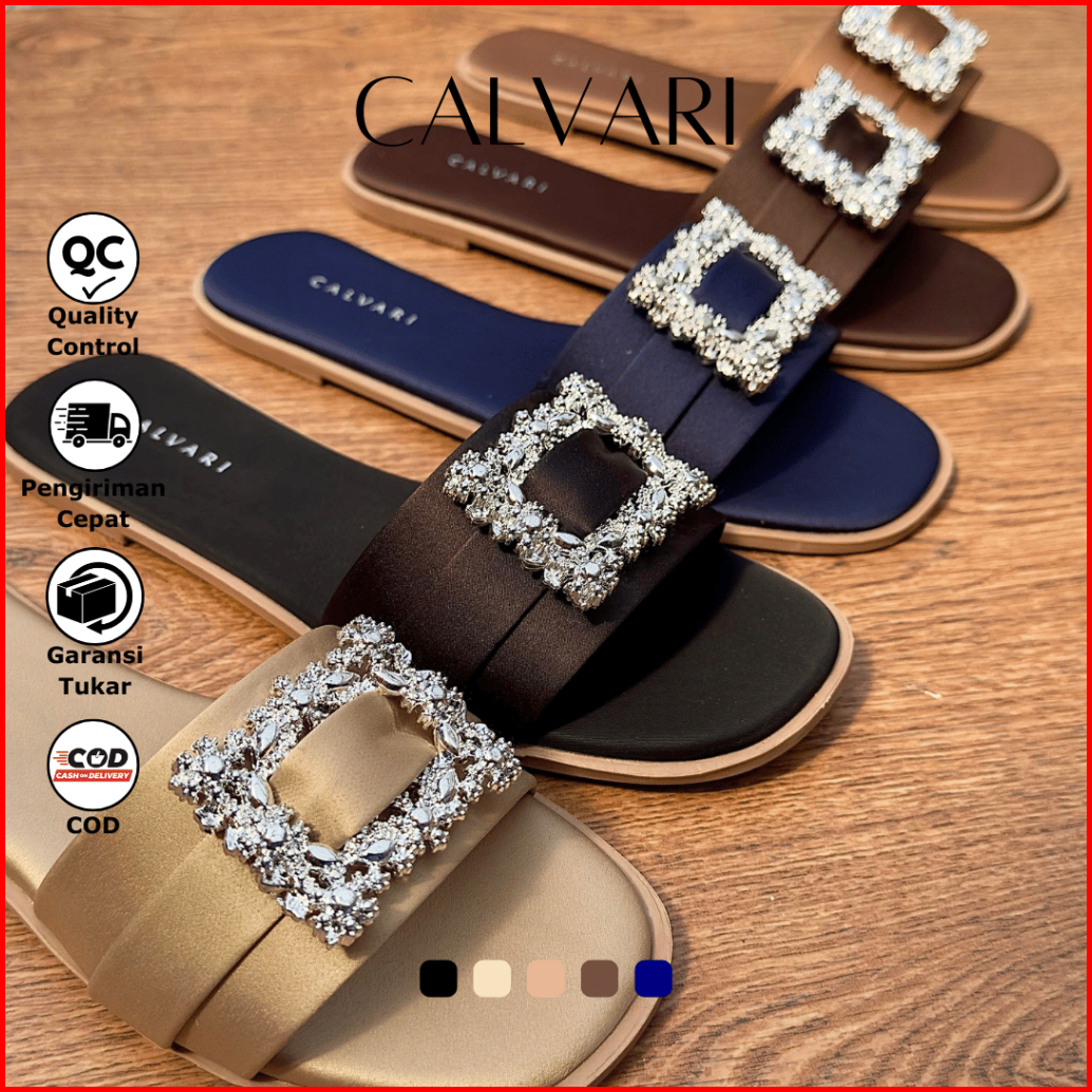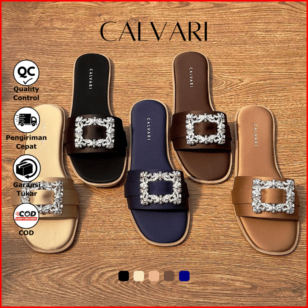 Calvari - Krista Sandal Wanita Korea Teplek Casual Kekinian Size 36 - 40 Sendal Flat Cewek Kasual