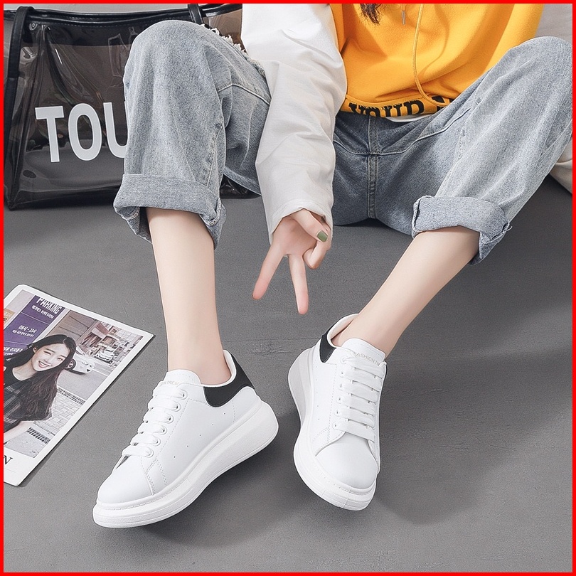 Beeyoo Sepatu Sneakers Wanita Tali Putih Sepatu Kets Sepatu Cewek Fashion Kekinian Wk112