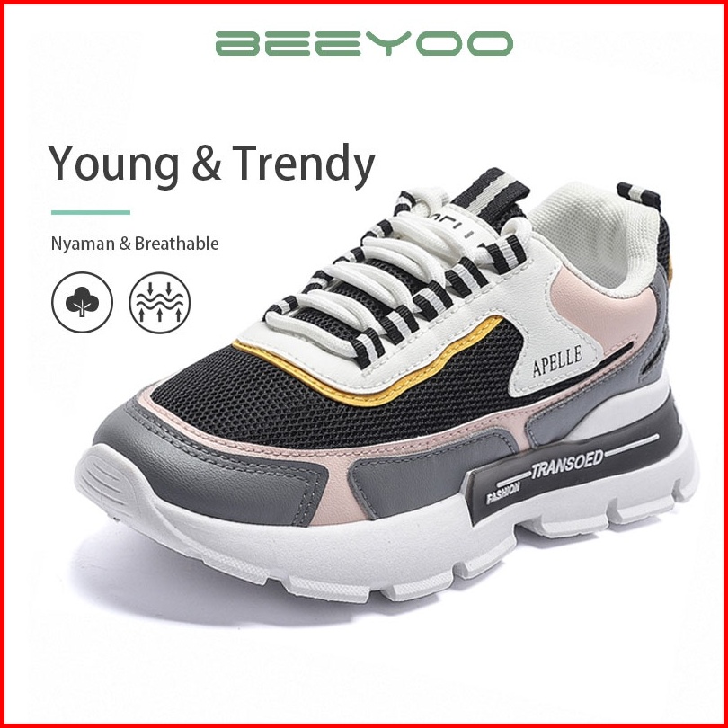 Beeyoo Sepatu Sneakers Tali Fashion Wanita Kekinian Korea Style Sport Shoes Wd112