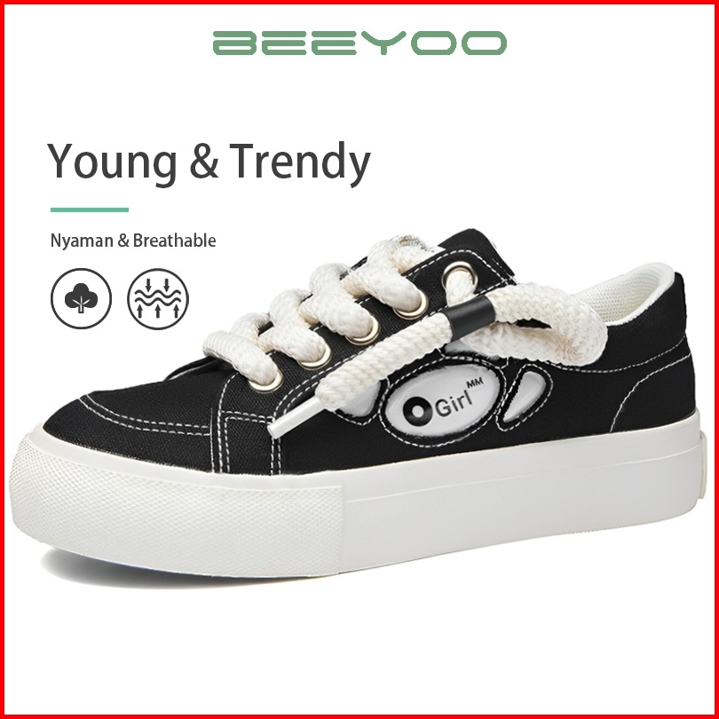 Beeyoo Sepatu Sneakers Canvas Wanita Sepatu Formal Casual Tali Sepatu Sekolah Kanvas Wk213