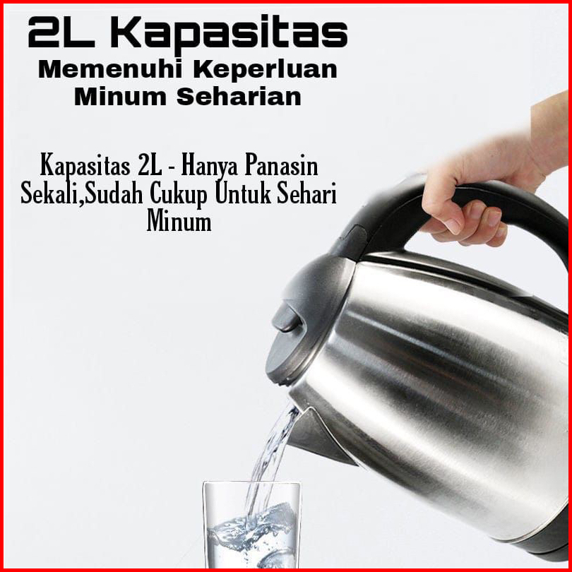 Teko Listrik Kettle Elektrik Pemanas Air 2l 2 Liter Stainless Stell Portable Teko Hotel