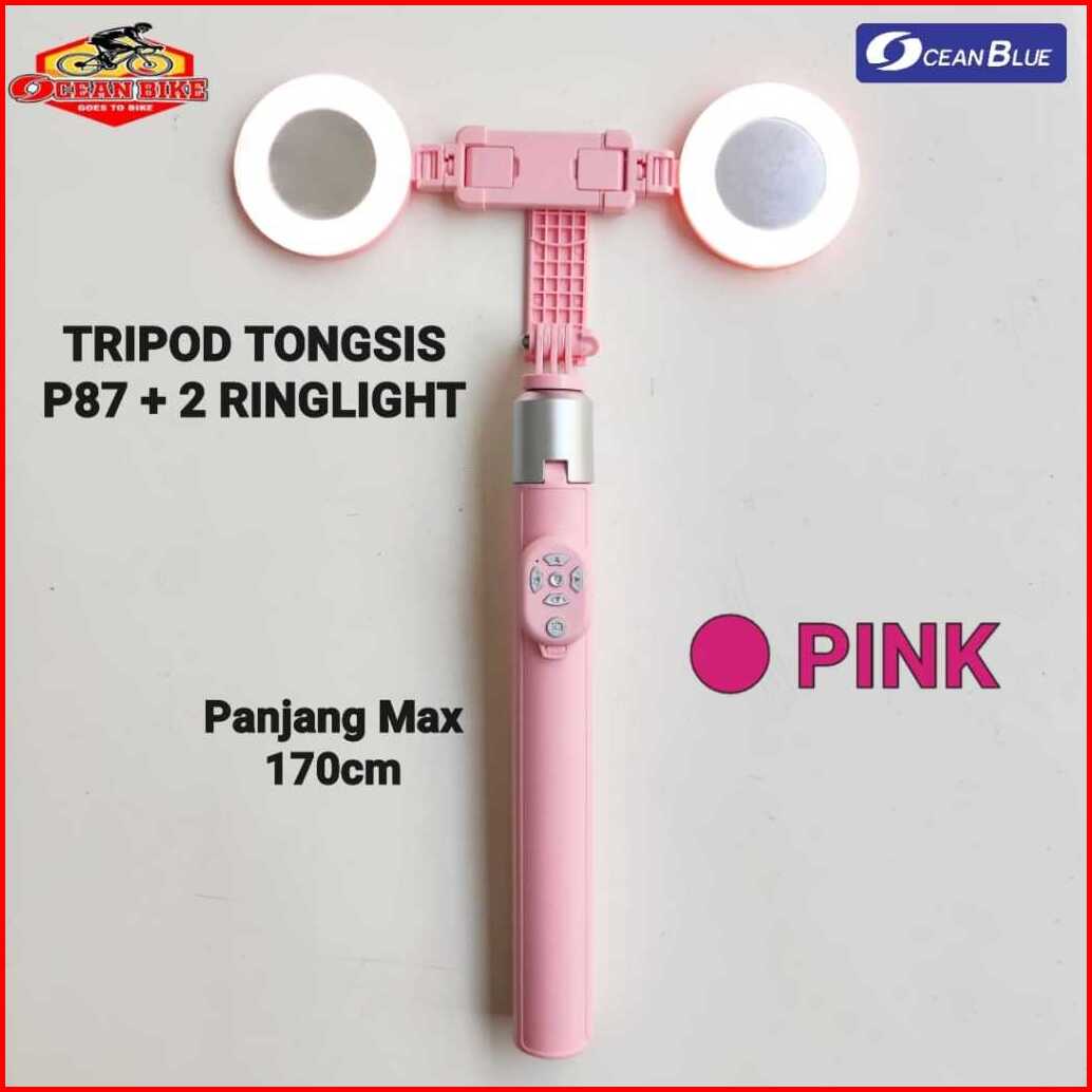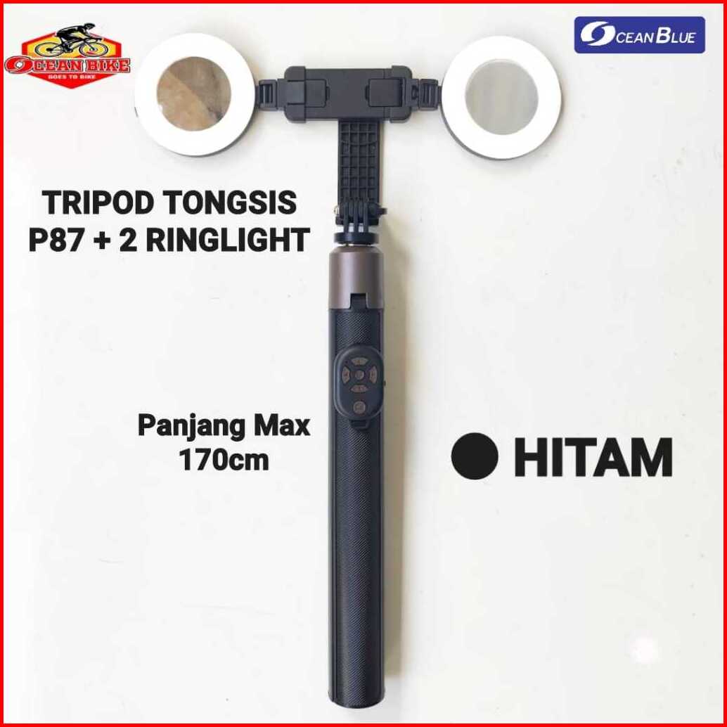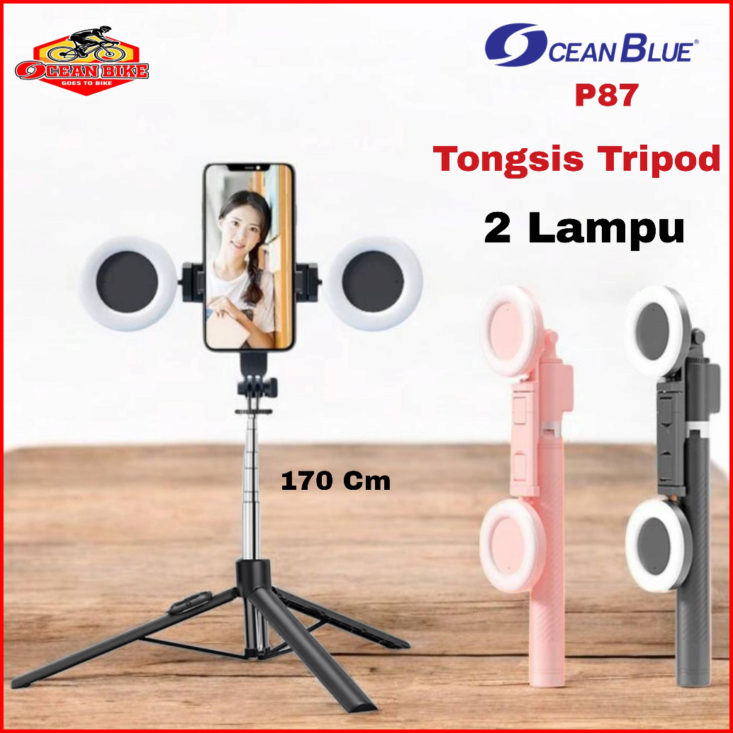 Oceanblue Tongsis Tripod Bluetooth Remote P87 170cm Lampu Led Flash 360 Holder Hp Konten Kreator