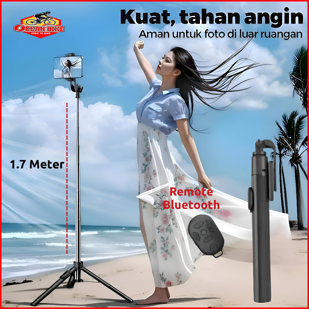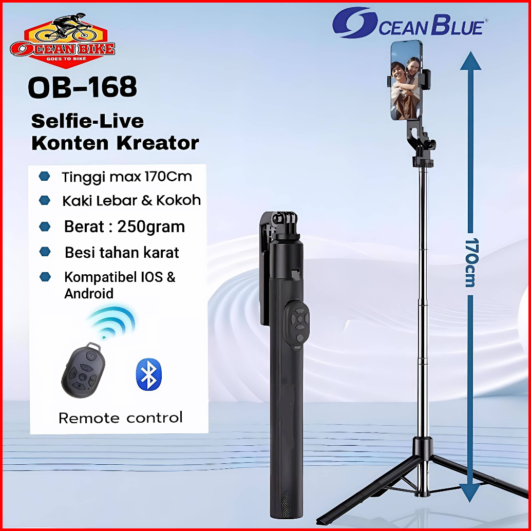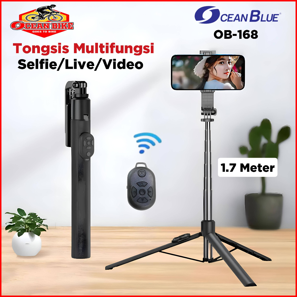 Oceanblue Tripod Bluetooth Remote Tongsis Selfie Stick 3in1 Ob168 170 Cm Video Konten Kreator