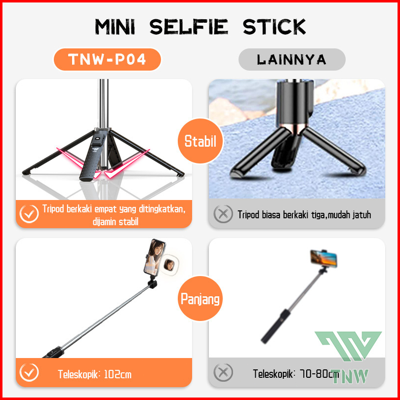 Tnw P04 Tongsis Bluetooth Tongsis Tripod Selfie Stick Tripod Tongsis Tripod Remote Tongsis 4 In 1 Led Fill Light