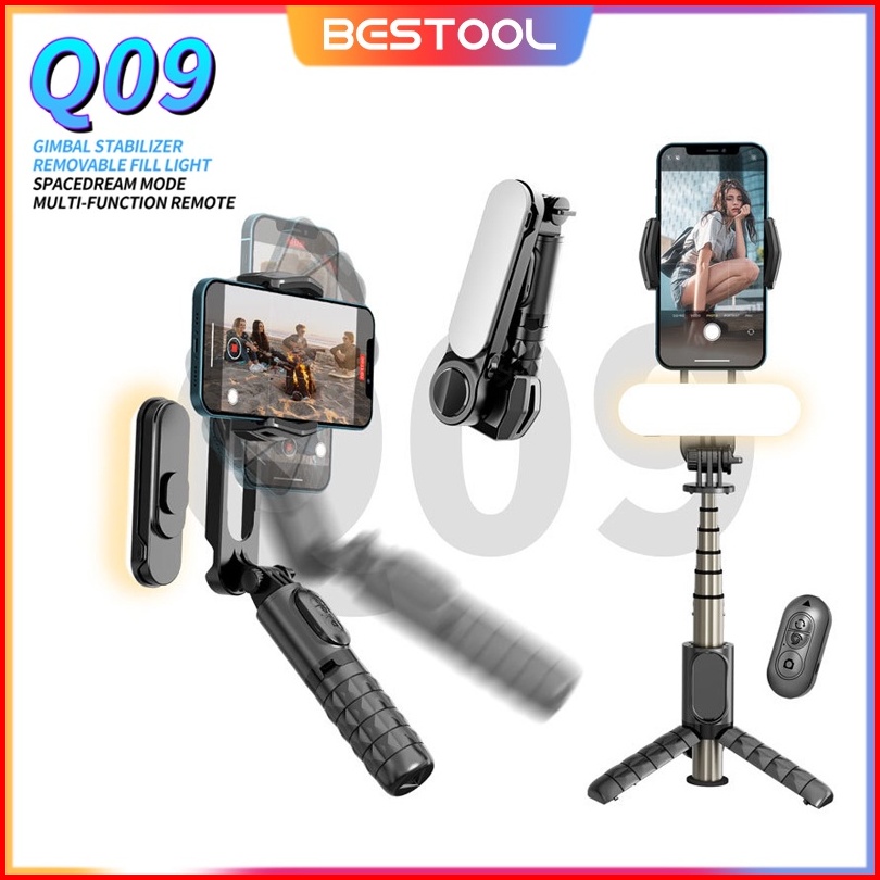 Bestool Q09 Tripod Gimbal Stabilizer Handphone Auto Balance Selfie Stick And Tripod Fill Light Gimbal Hp With Wireless B