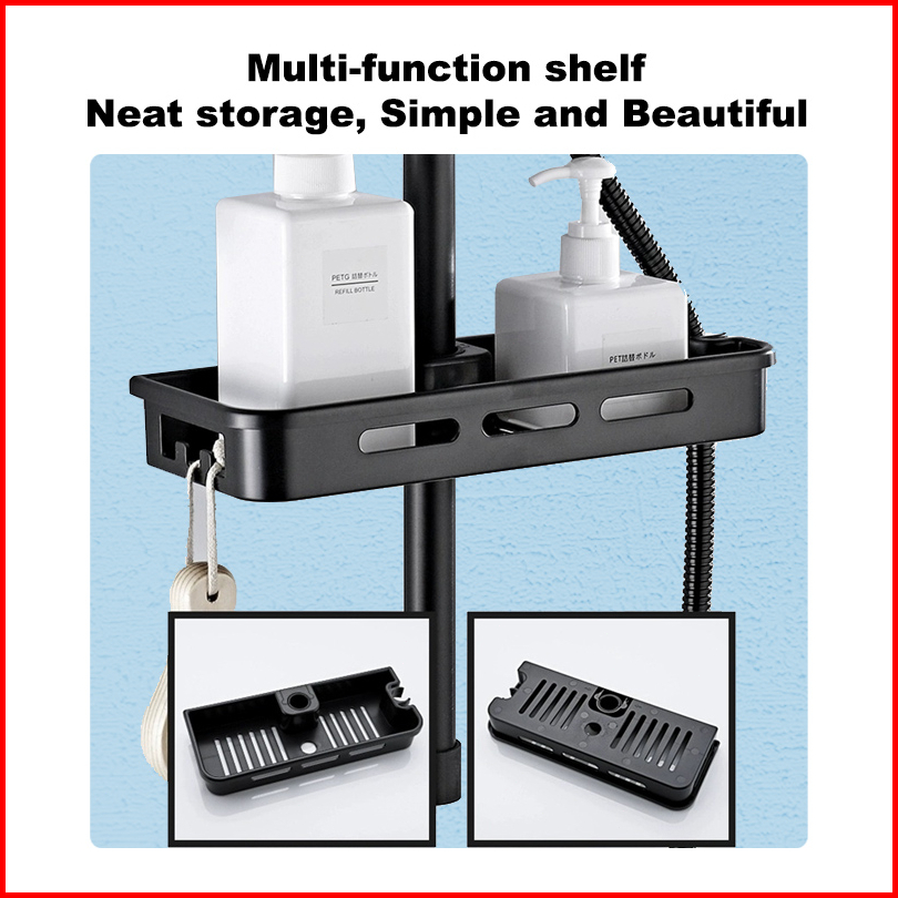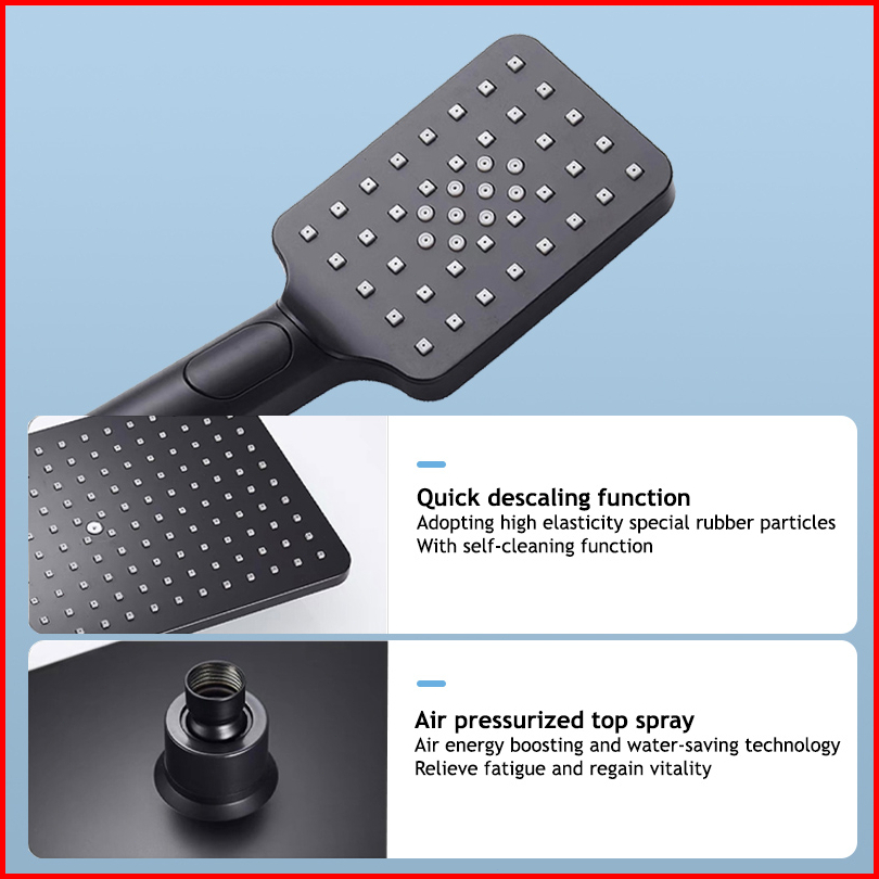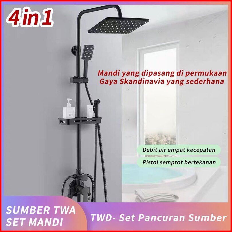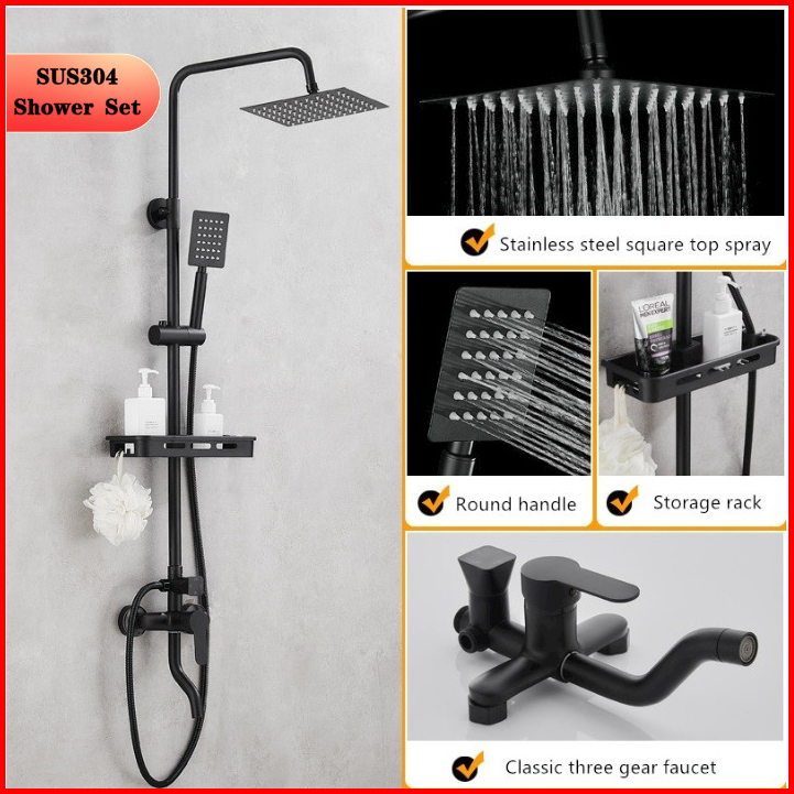 Sus304 4in1 Paket Shower Tiang Stainless Hitam Set Shower Panas Dingin Persegi Shower Kamar Mandi