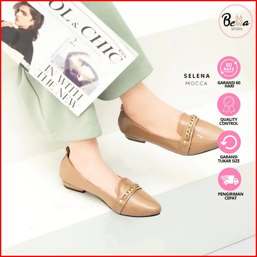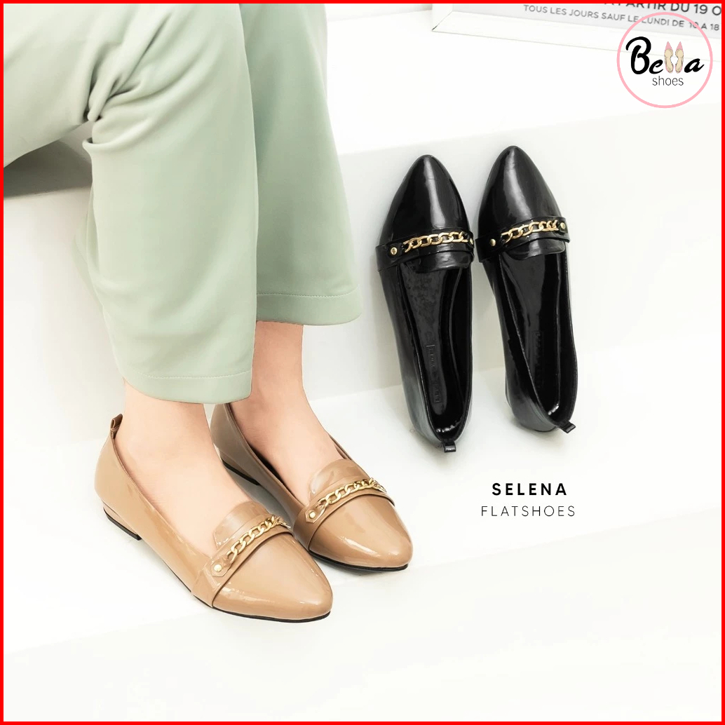 Bellashoesjkt Selena Flatshoes Glossy Kerja Model Casual Daily