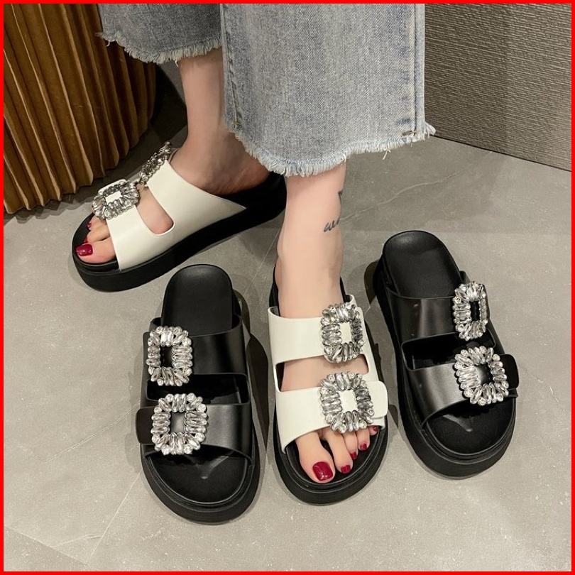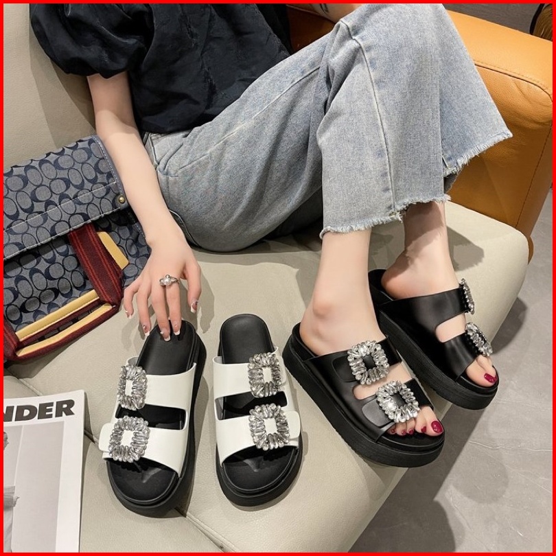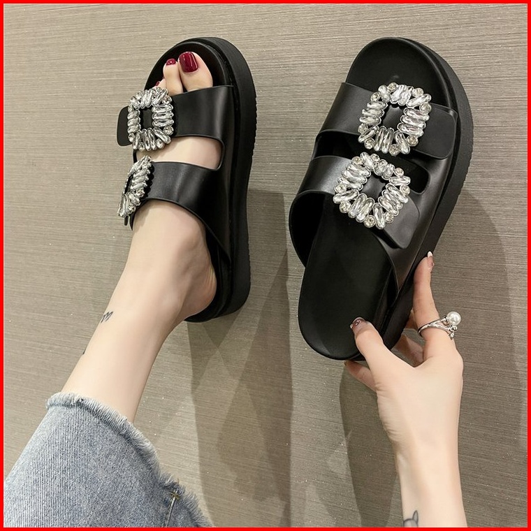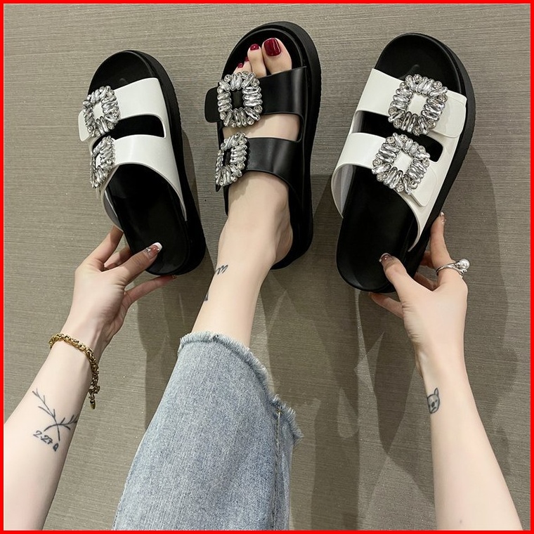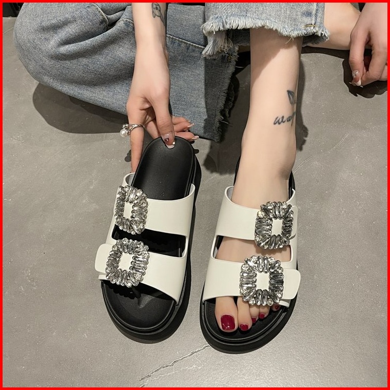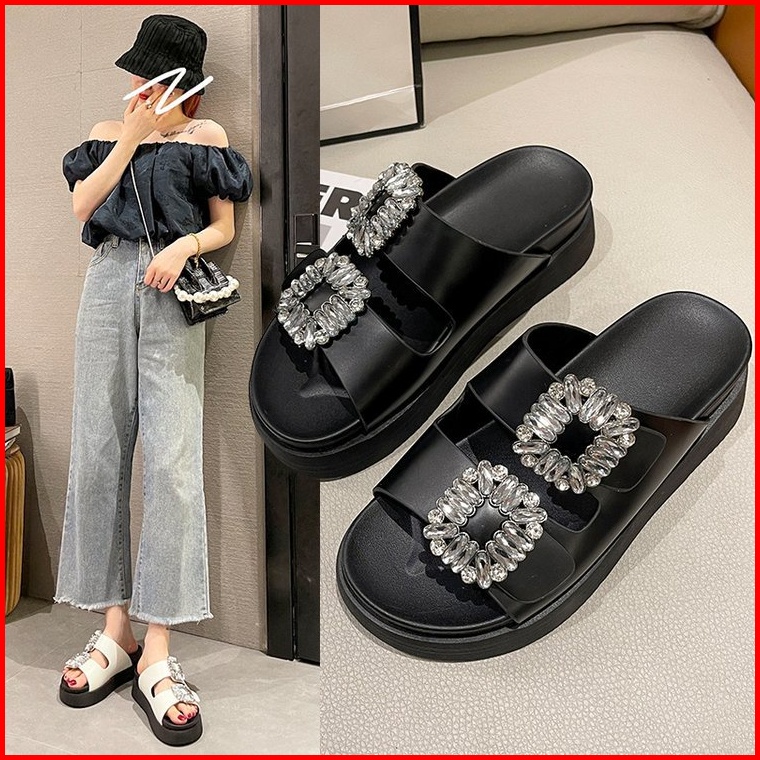 Needxuss - A63 Sandal Flatbed Wedges Kekinian Fashion Wanita Import Premium Quality Korea Sytle Free Box Sendal Merek Ce