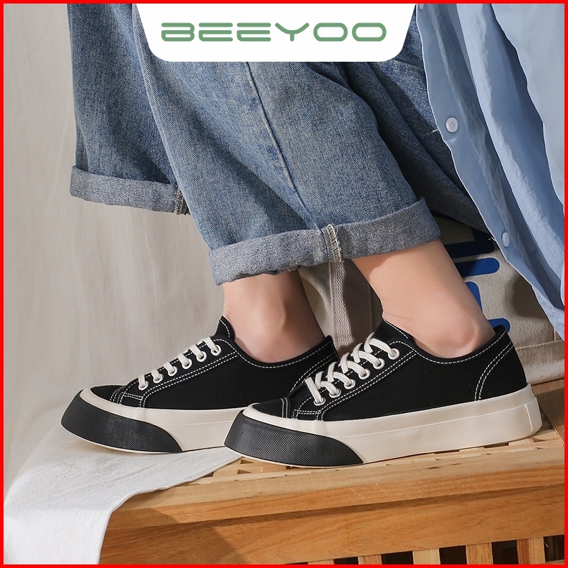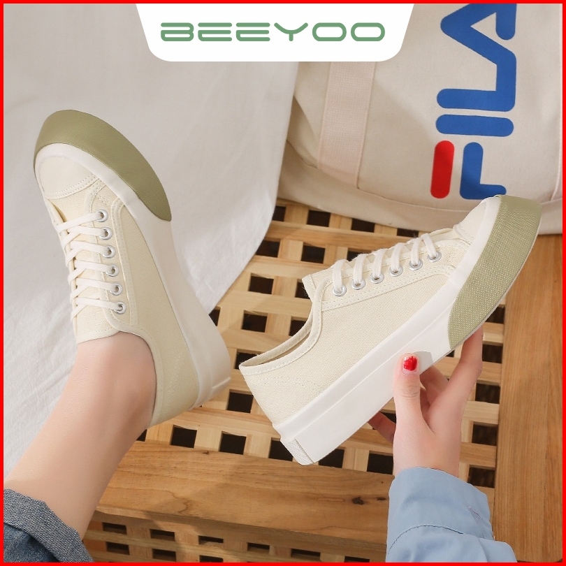Beeyoo Sepatu Sneakers Kanvas Wanita Korean Style Sepatu Cewek Kekinian Model Tali 35-36 Wk203