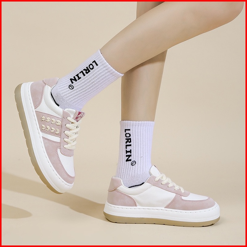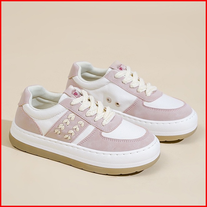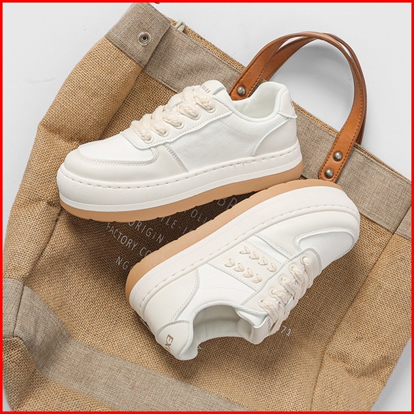 Beeyoo Sepatu Sneakers Tali Simpel Kulit Wanita Sepatu Sneakers Casual Sport Fashion Kekinian Wk134
