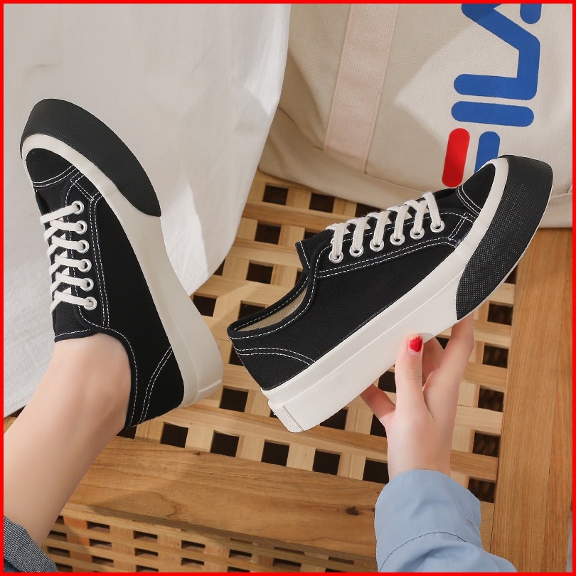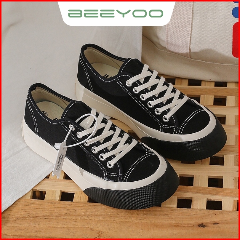 Beeyoo Sepatu Sneakers Kanvas Wanita Korean Style Sepatu Sneakers Tali Kekinian 35-36 Wk203