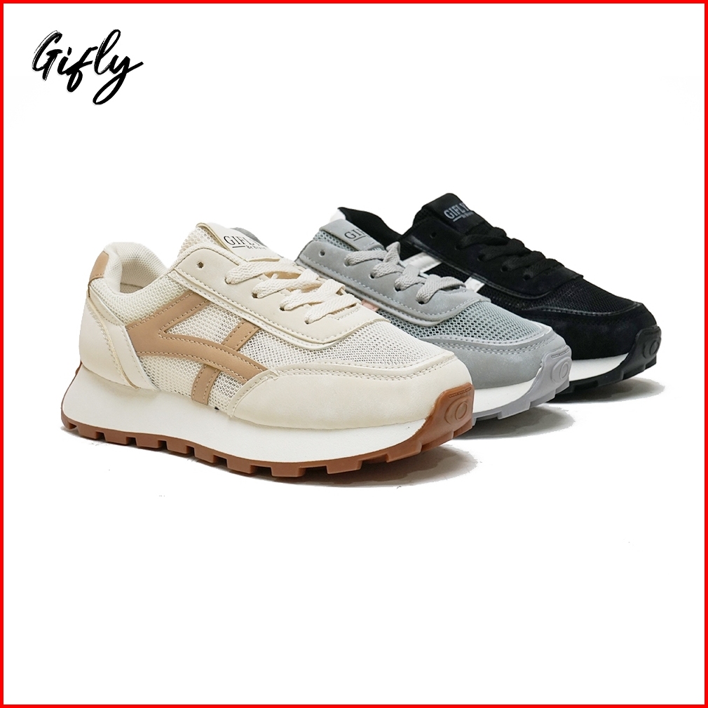 Gifly Xeline Sepatu Sneakers Wanita Putih Hitam Sport Shoes A052