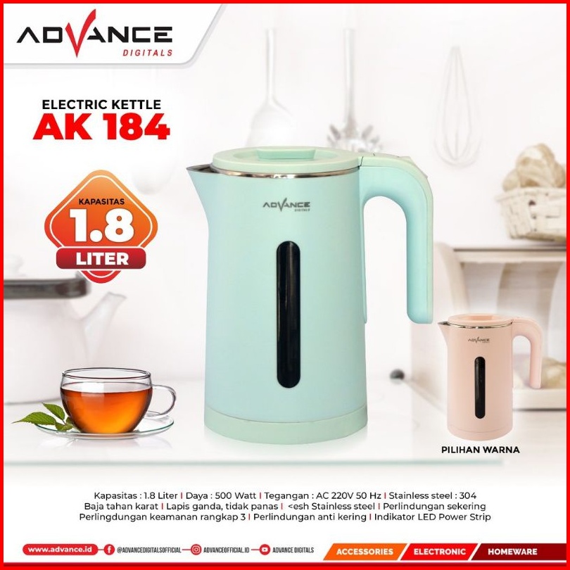 Advance Teko Listrik 1.8 Liter Electric Kettle 1.8l Ak-184