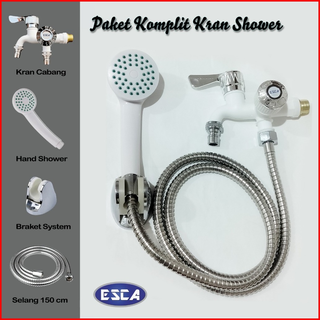 Kepala Shower Set Mandi Putih Standart Shower Head Putih Esca
