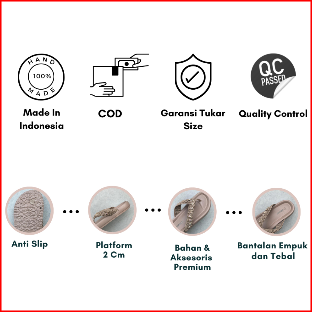 Bluebells Cody Sendal Jepit Beads Platform Wanita Lucu Tersedia Size 36-41