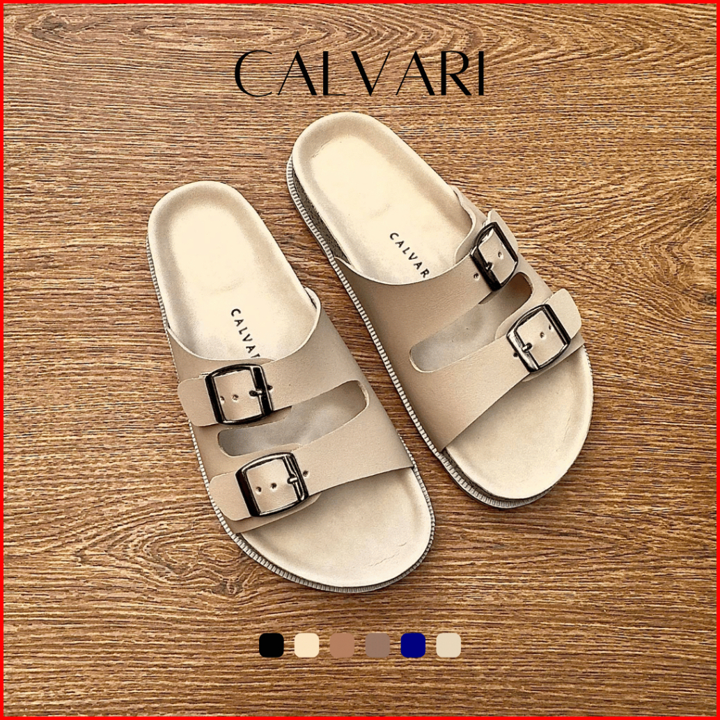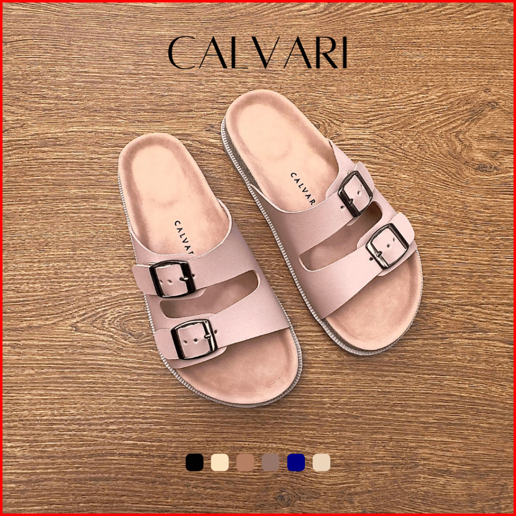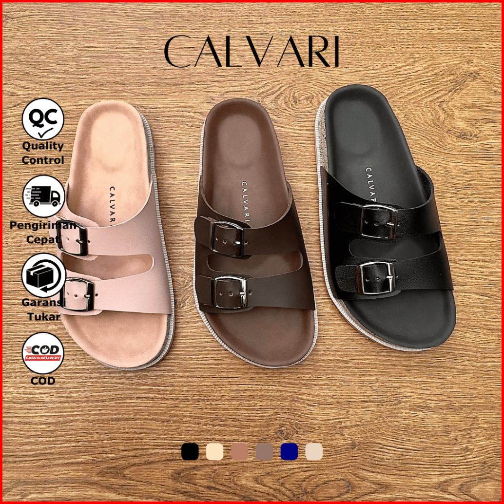 Calvari - Tomo Sandal Wanita Korea Teplek Casual Kekinian Size 36 - 40 Sendal Flat Cewek Kasual